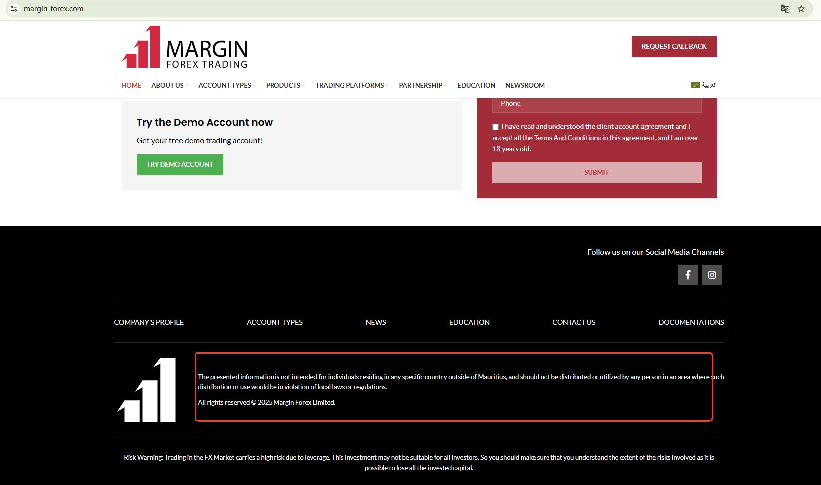 Margin Forex’s website provides no regulatory disclosures, only claims that it was registered in Mauritius.