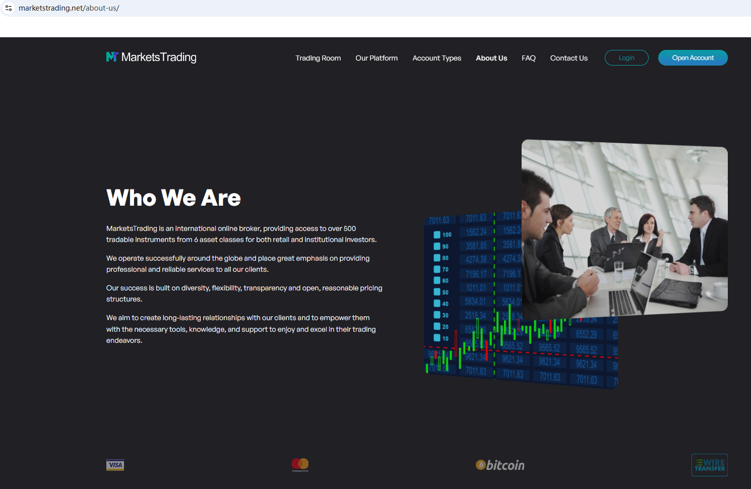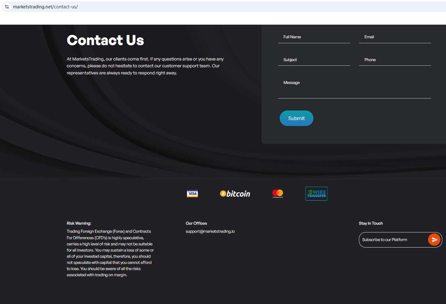 According to its website, it claims to be a reliable trader, but it does not display any valid information on the website, and even the most basic office address and phone number are not disclosed. This is very unreliable and investors are advised to stay away from it.In addition, we found that the Financial Conduct Authority (FCA) issued a warning against Markets Trading Ltd, believing this company might be providing financial services or products without proper authorization in the UK.In essence, Markets Trading Ltd is not regulated by any governing body. Entrusting it with investors' funds is highly risky, as there are no legal protections in place to safeguard the funds.Markets Trading Ltd appears to be a scam.