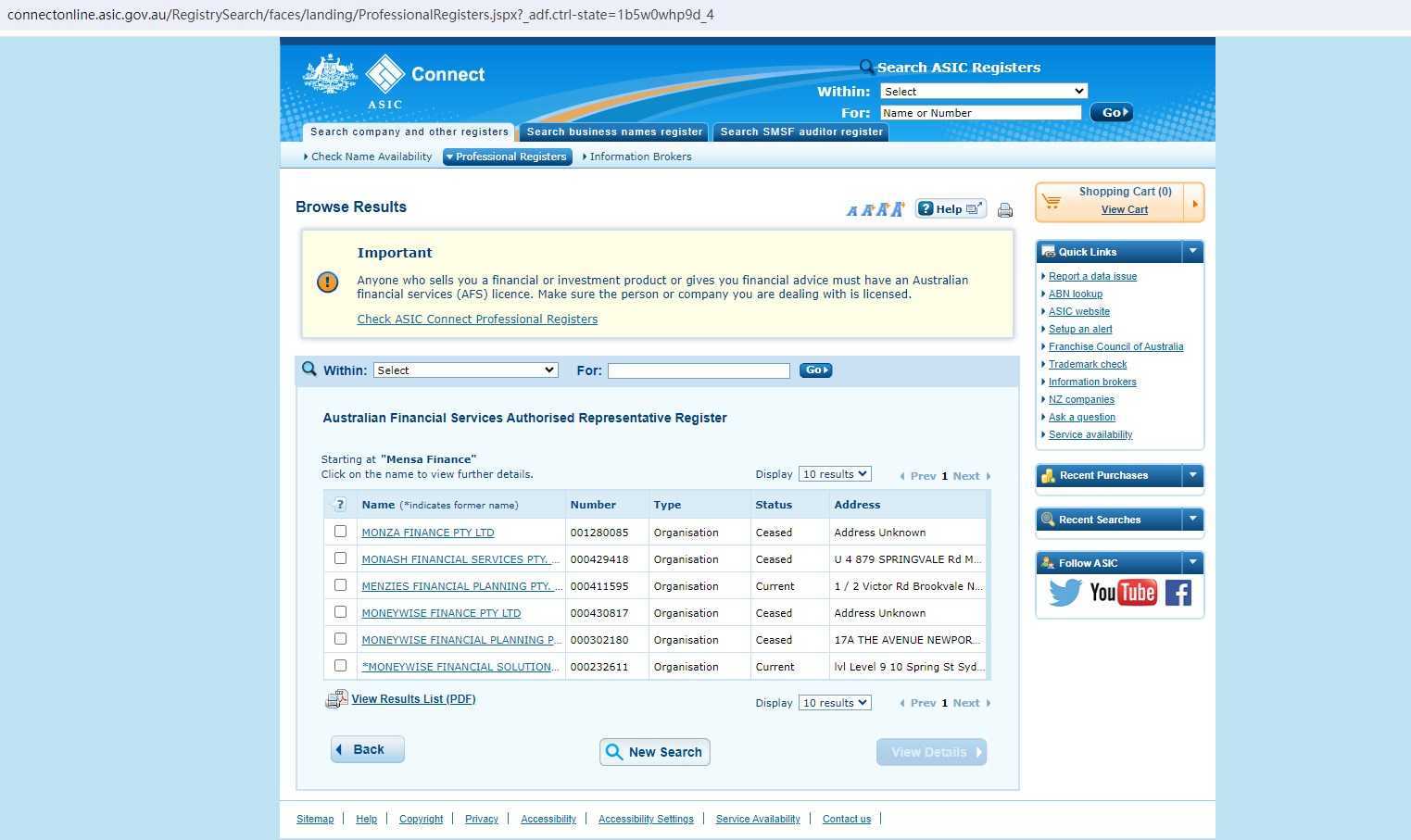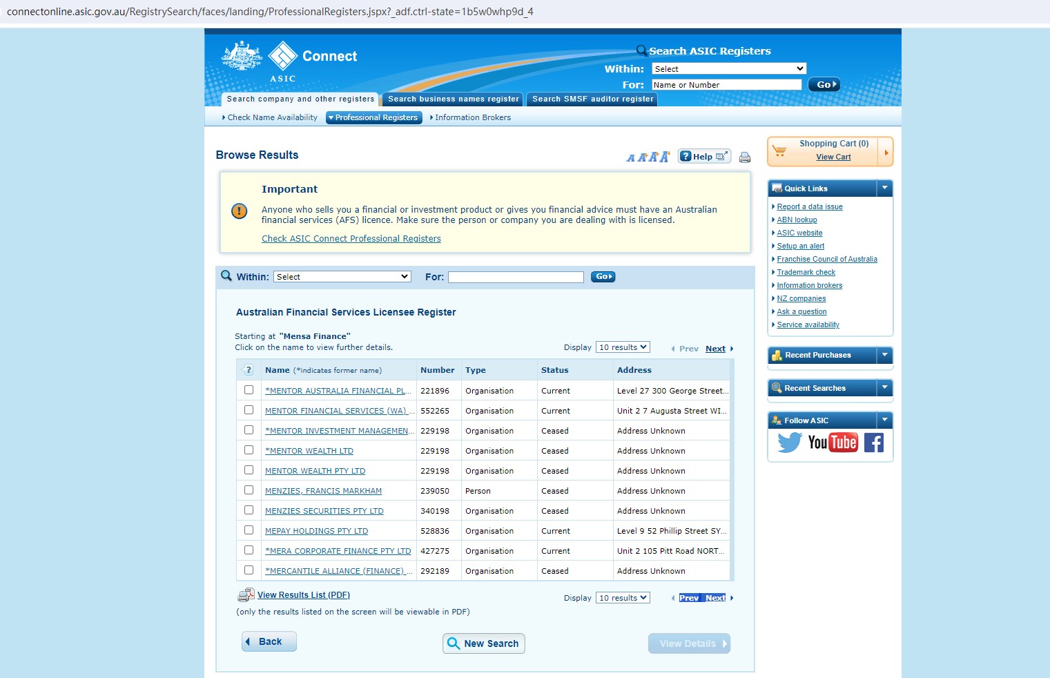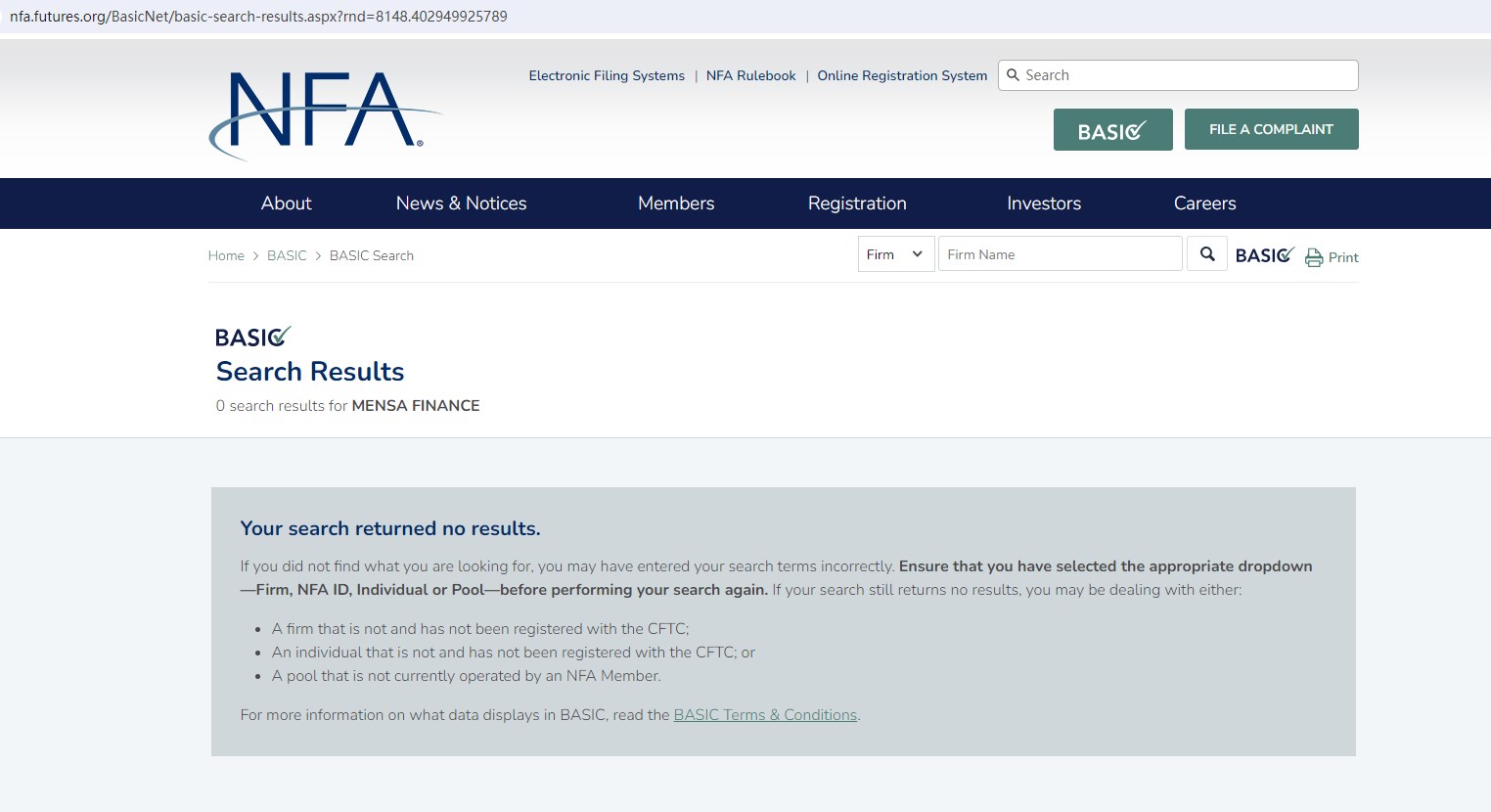 Upon investigation, we found that Mensa Finance is not regulated by the NFA and ASIC.