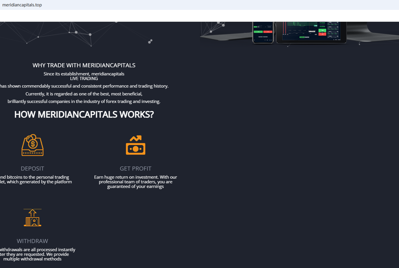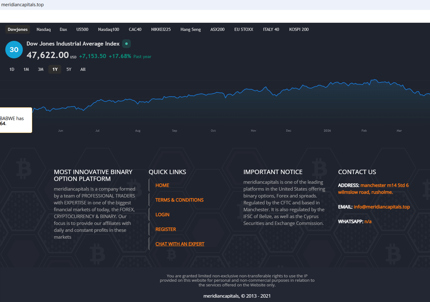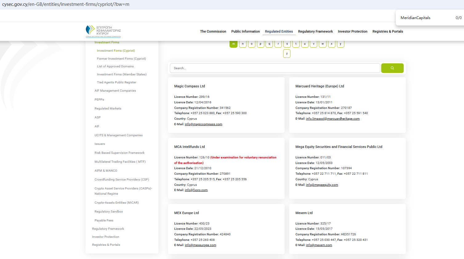 According to its website, it claims to be regulated by the Cyprus Securities and Exchange Commission (CySEC) and the Belize Financial Services Commission (IFSC). However, a search revealed no matching information with either CySEC or IFSC. Furthermore, the Financial Conduct Authority (FCA) issued a warning regarding MeridianCapitals, suspecting that this company may be offering financial services or products without the necessary authorization.