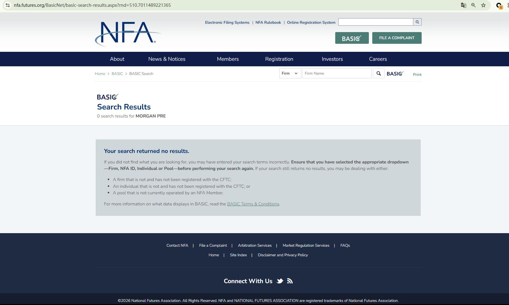 The absence of NFA registration confirms that this platform is operating without proper authorization. Therefore, Morgan Pre appears to be a scam.