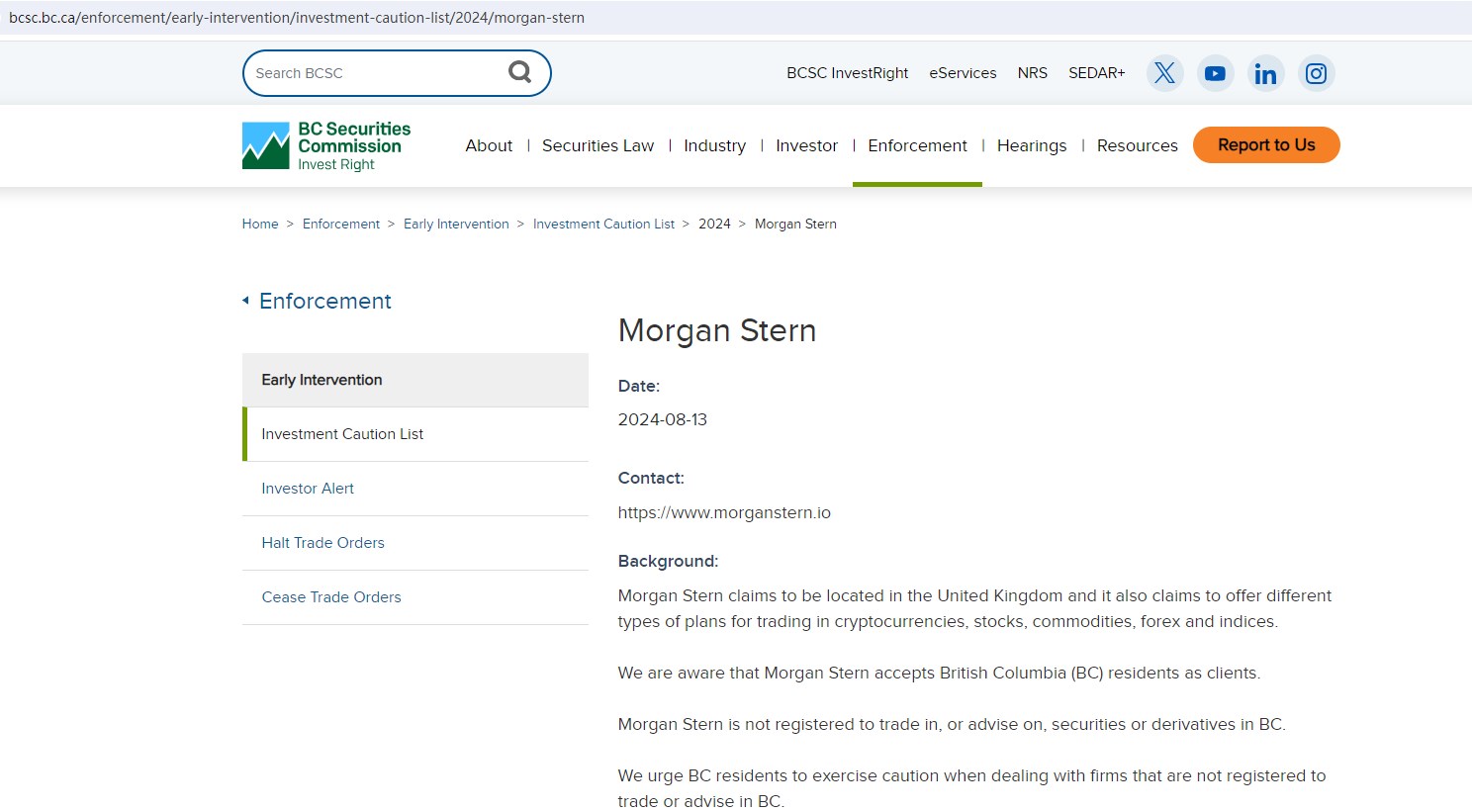 Morgan Stern claims to be a reliable company without presenting any information about its regulation. It locates in the United Kingdom, we searched the United Kingdom Financial Conduct Authority (UK FCA) but found no matching results.The truth is that Morgan Stern is not regulated by any regulators. Letting it hold or control investors' money is unsafe, and the money can not be protected by any laws.Morgan Stern is a scam.