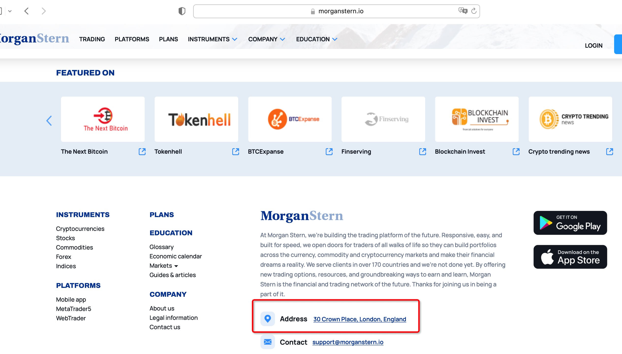 Morgan Stern claims to be a reliable company without presenting any information about its regulation. It locates in the United Kingdom, we searched the United Kingdom Financial Conduct Authority (UK FCA) but found no matching results.