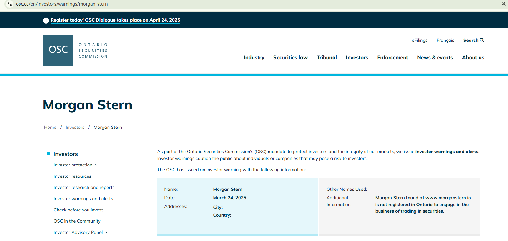 The truth is that Morgan Stern is not regulated by any regulators. Letting it hold or control investors' money is unsafe, and the money can not be protected by any laws.