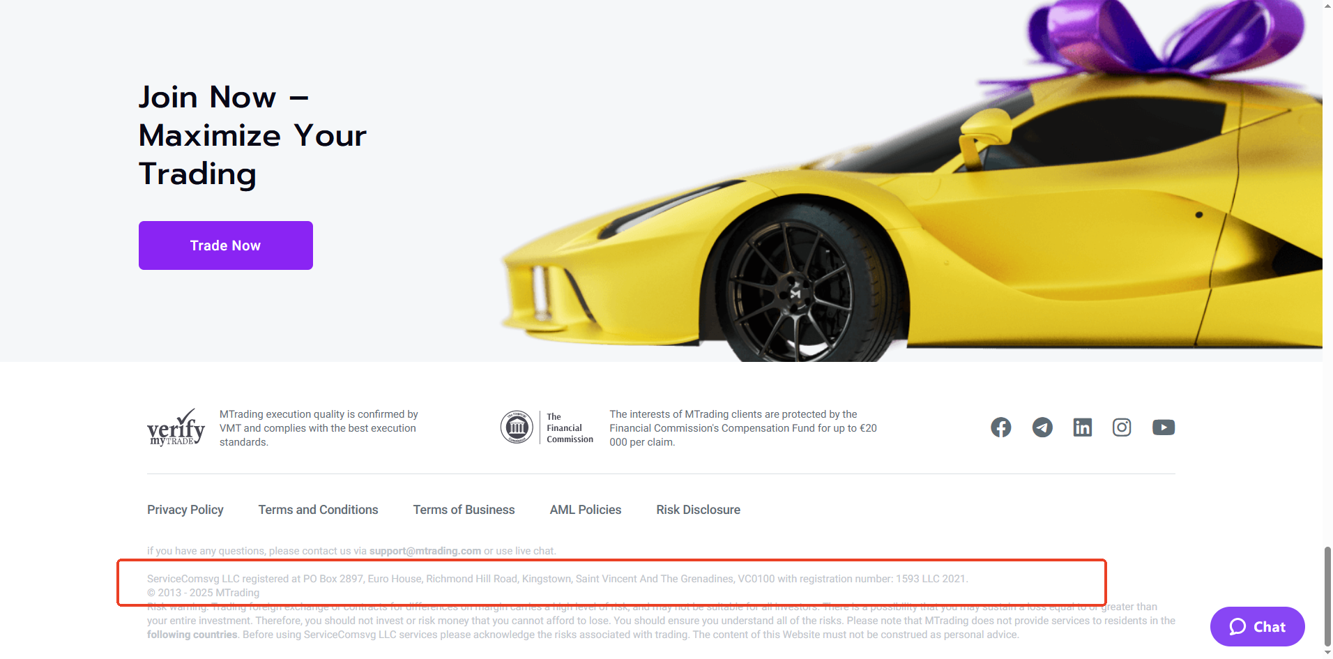 MTrading is only claimed to be registered with the Financial Services Authority (FSA) of Saint Vincent and the Grenadines. In reality, this registration merely grants it International Business Company (IBC) status, which does not constitute a valid financial license. Furthermore, the SVG FSA has publicly stated that it neither regulates nor licenses forex trading activities.
