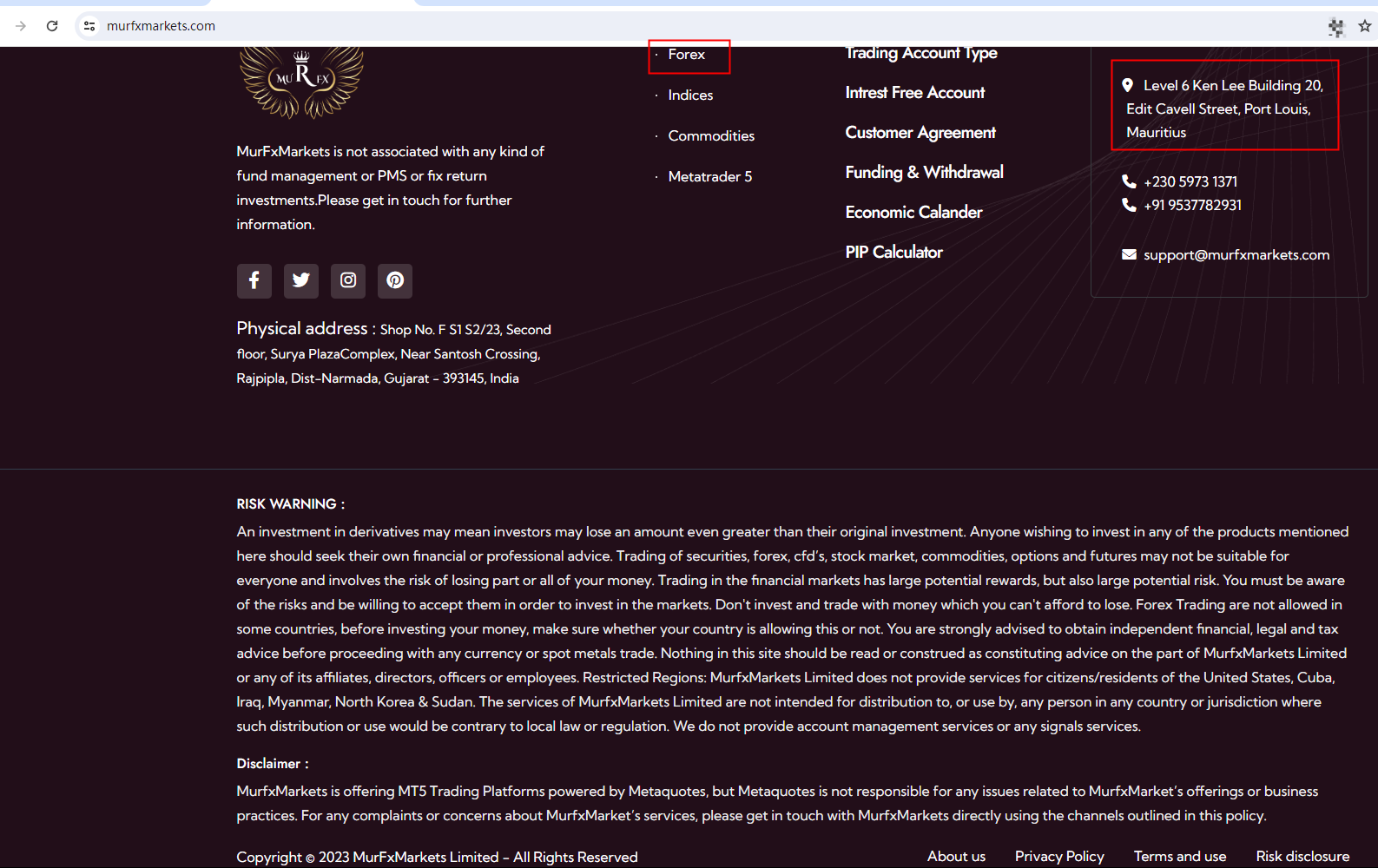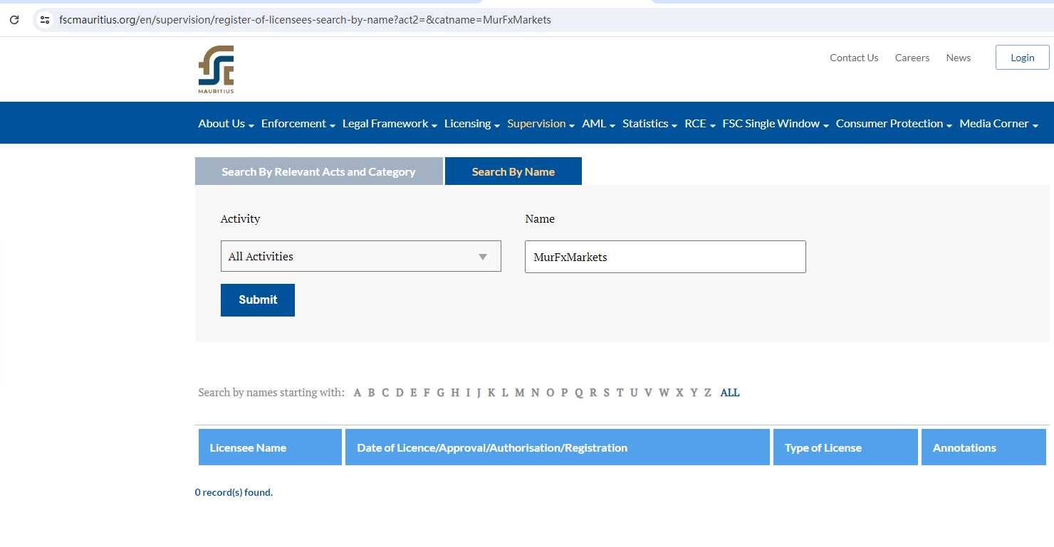 There is no any regulatory information on its website. This broker locates in Mauritius, but we don't find any results on the Financial Services Commission, Mauritius (FSC) matching to MurFxMarkets.