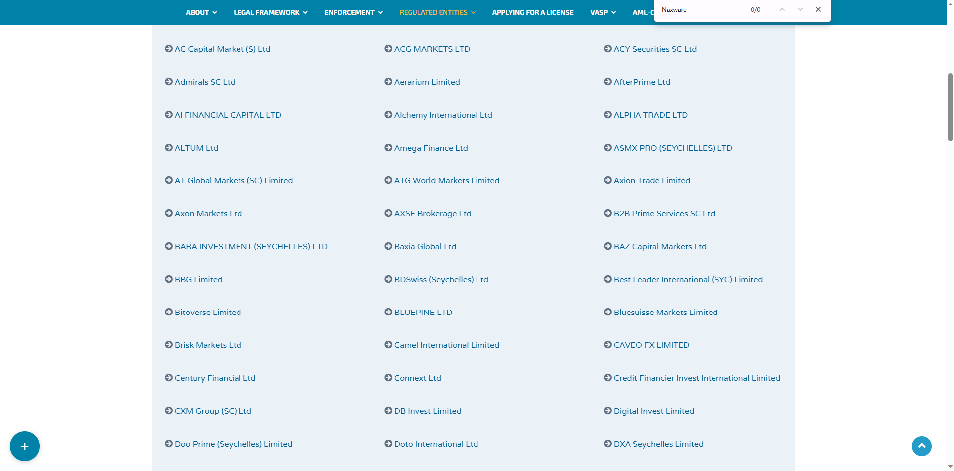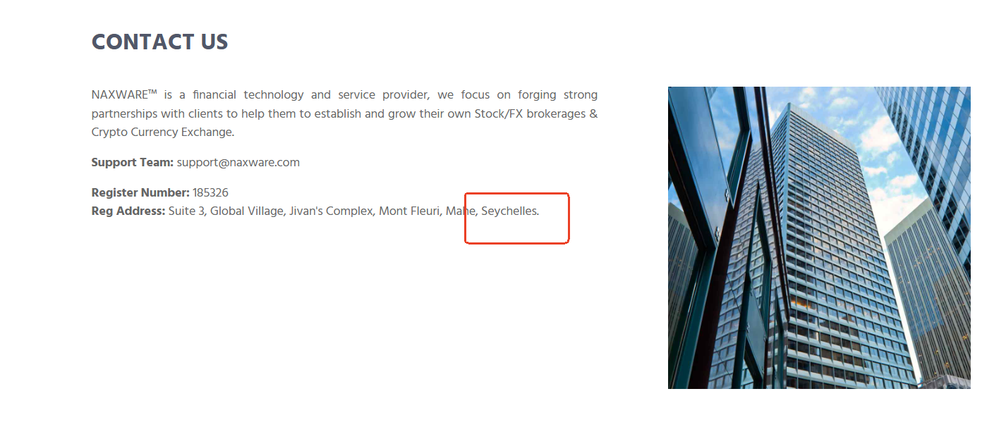 NAXWARE provides no verifiable regulatory information, merely stating that it is operated by Naxware Systems Inc., allegedly registered in the Seychelles. However, our thorough search of the official register of the Seychelles Financial Services Authority (FSA) yielded no record of NAXWARE or any related entity.