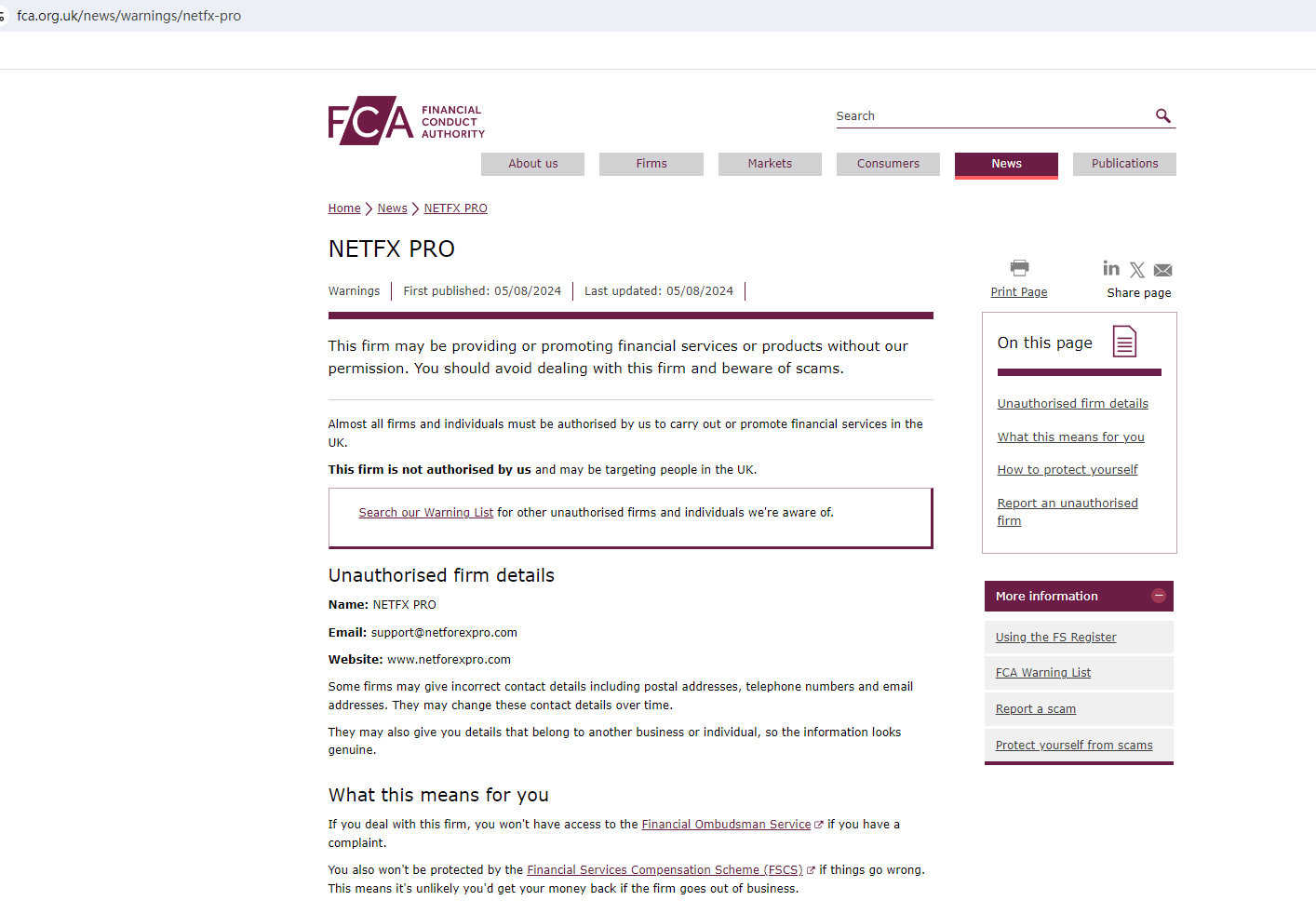 What's more, the Financial Conduct Authority (FCA) issued a warning against NETFX PRO, believing this company might be providing financial services or products without proper authorization in the UK.