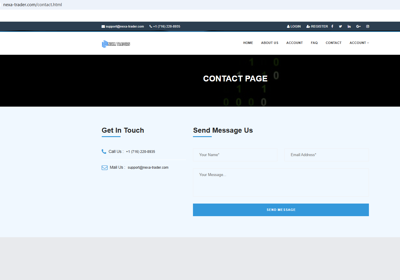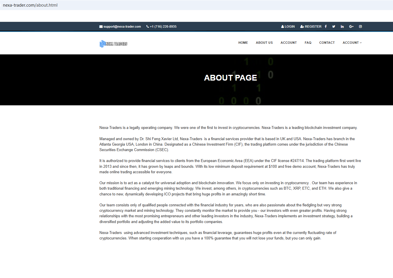 According to its website, it claims to be registered in both the UK and the US. Upon investigation, no matching information was found with the National Futures Association (NFA). Furthermore, we found that the Financial Conduct Authority (FCA) issued a warning regarding Nexa Trader(s), suspecting that this company may be offering financial services or products without the necessary authorization.