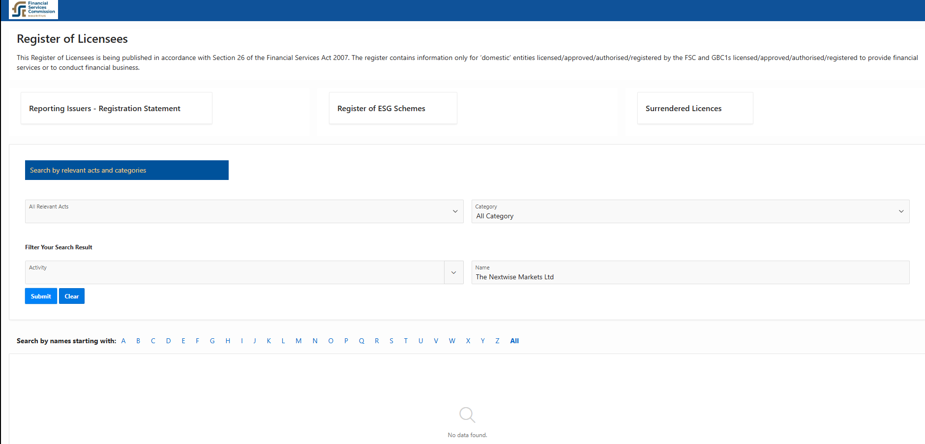 Furthermore, our search of the Financial Services Commission (FSC) of Mauritius yielded no matching records. While Nextwise Markets may maintain a physical presence in Mauritius, there is no evidence that it holds authorization from any recognized regulatory body to conduct trading services there. This strongly suggests its operations may be unlicensed and potentially unlawful.