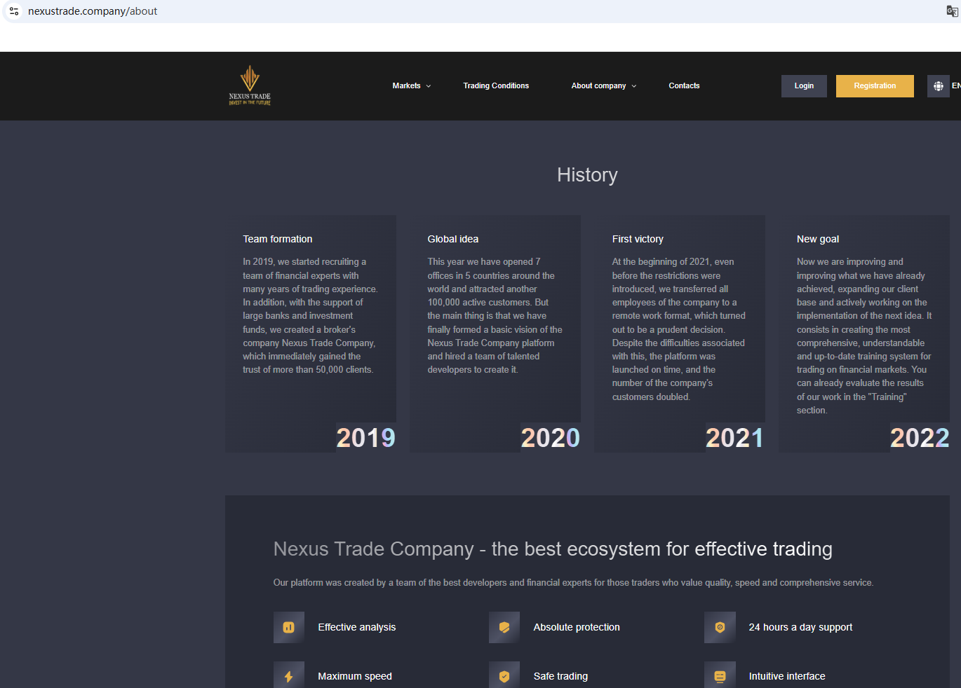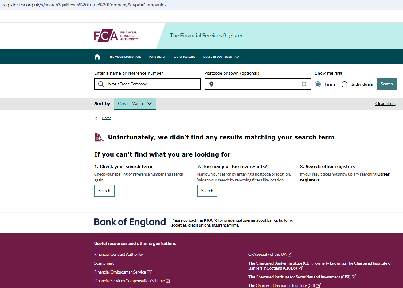 According to its website, it is located in the UK. Upon investigation, no matching information was found in the Financial Conduct Authority (FCA). In addition, the Financial Services and Markets Authority (FSMA) issued a warning about Nexus Trade Company for the lack of the required authorization.