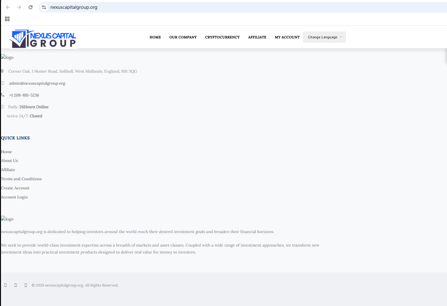 In fact, nexuscapitalgroup.org is not regulated by any authority. Therefore, nexuscapitalgroup.org is a scam.