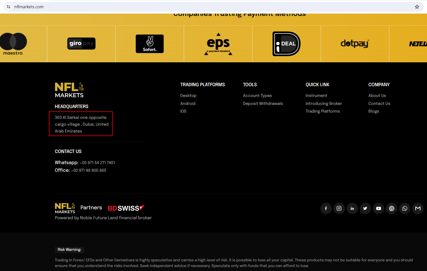 NFL MARKETS claims to be a reliable company without presenting any information about its regulation.