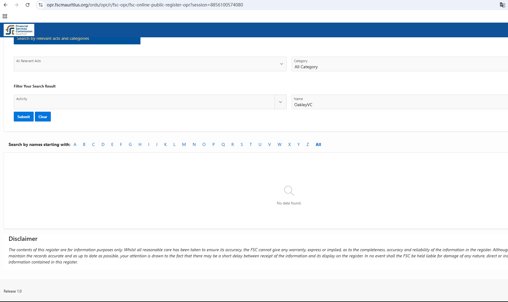According to its website, its office address is located in Maori-kyushu. A search revealed no matching information in the Mauritius Financial Services Commission (FSC). In addition, the Australian Securities & Investments Commission (ASIC) issued a warning against OakleyVC, believing this company might be providing financial services or products without proper authorization.