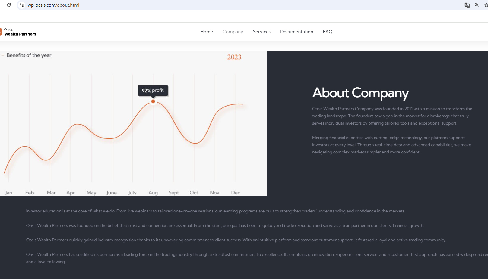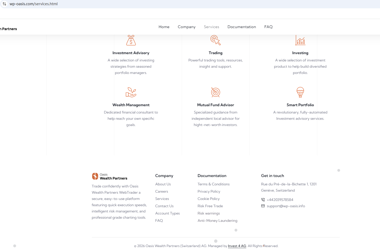 According to its website, it was founded in 2011 and has its office in Switzerland. However, our investigation revealed that its domain name was only created in 2025, clearly indicating that the information displayed on its website is inconsistent with the facts. We also found no matching information in the Swiss Financial Market Supervisory Authority (FINMA). Furthermore, the Financial Conduct Authority (FCA) issued a warning regarding Oasis Wealth Partners , suspecting that this company may be offering financial services or products without the necessary authorization.