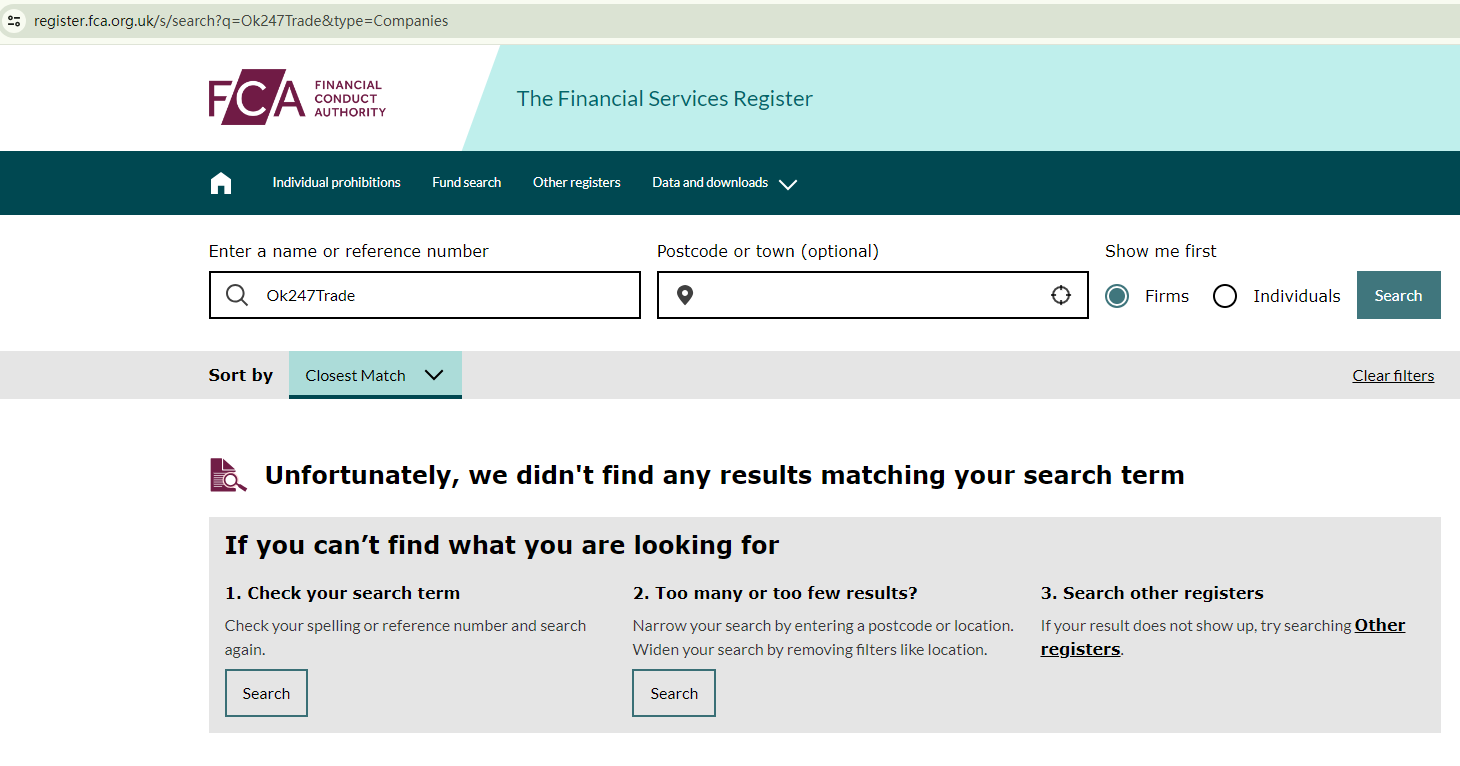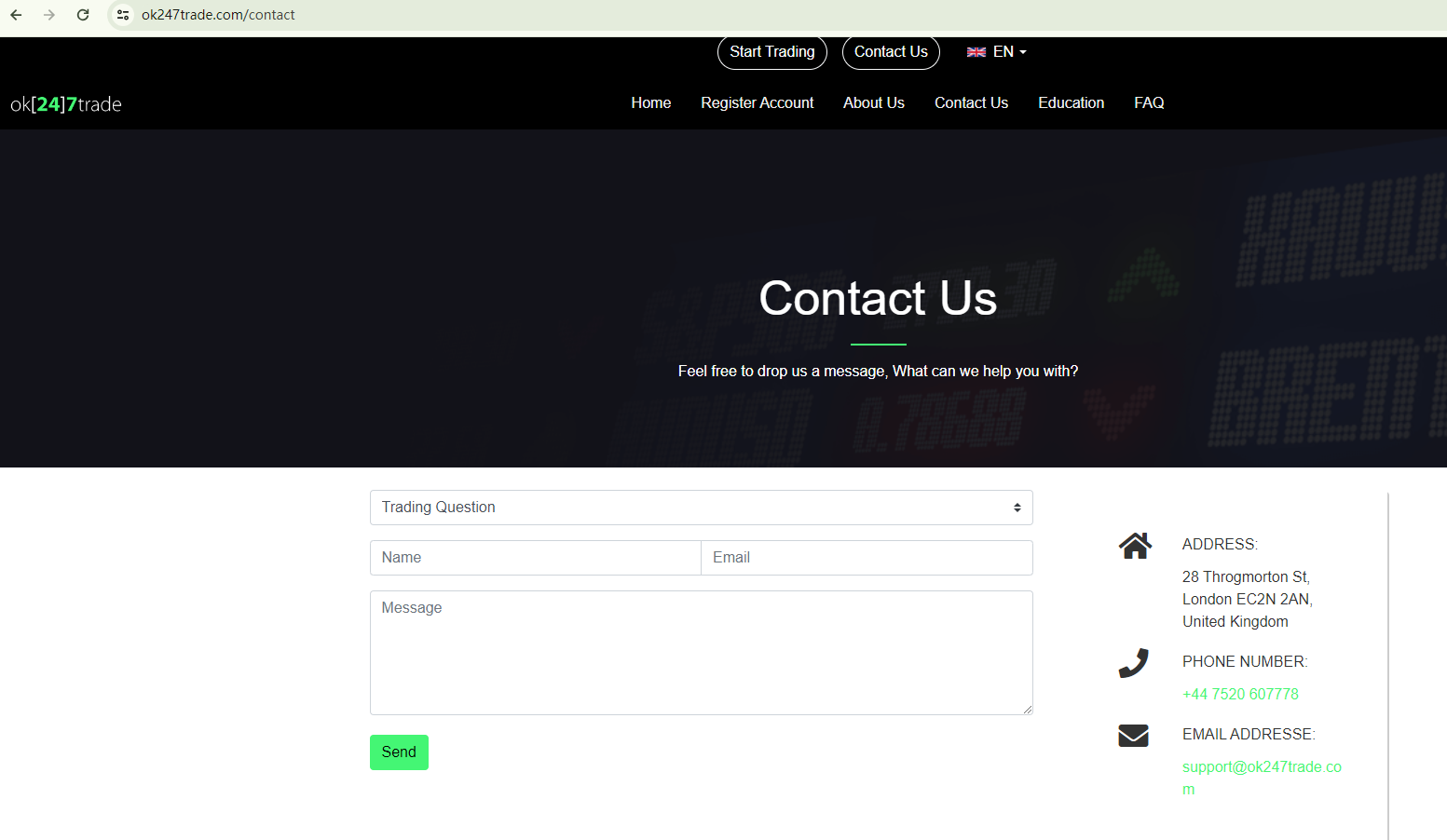 Ok247Trade purports to be based in Germany. However, there's no evidence to suggest that it's registered with the country's financial regulator, the Federal Financial Supervisory Authority (BaFin).In addition, it provides a phone number and an office address located in the UK, but it doesn't appear to adhere to local regulations. It's operating in the UK without the necessary authorization from the Financial Conduct Authority (FCA).The lack of regulatory oversight could potentially lead to fraudulent activities and identity theft. Investors who choose to trade with Ok247Trade are not protected by any legal framework. Given these circumstances, Ok247Trade could potentially be a scam, and traders are advised to exercise extreme caution and avoid it.