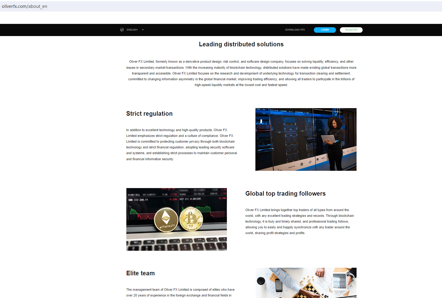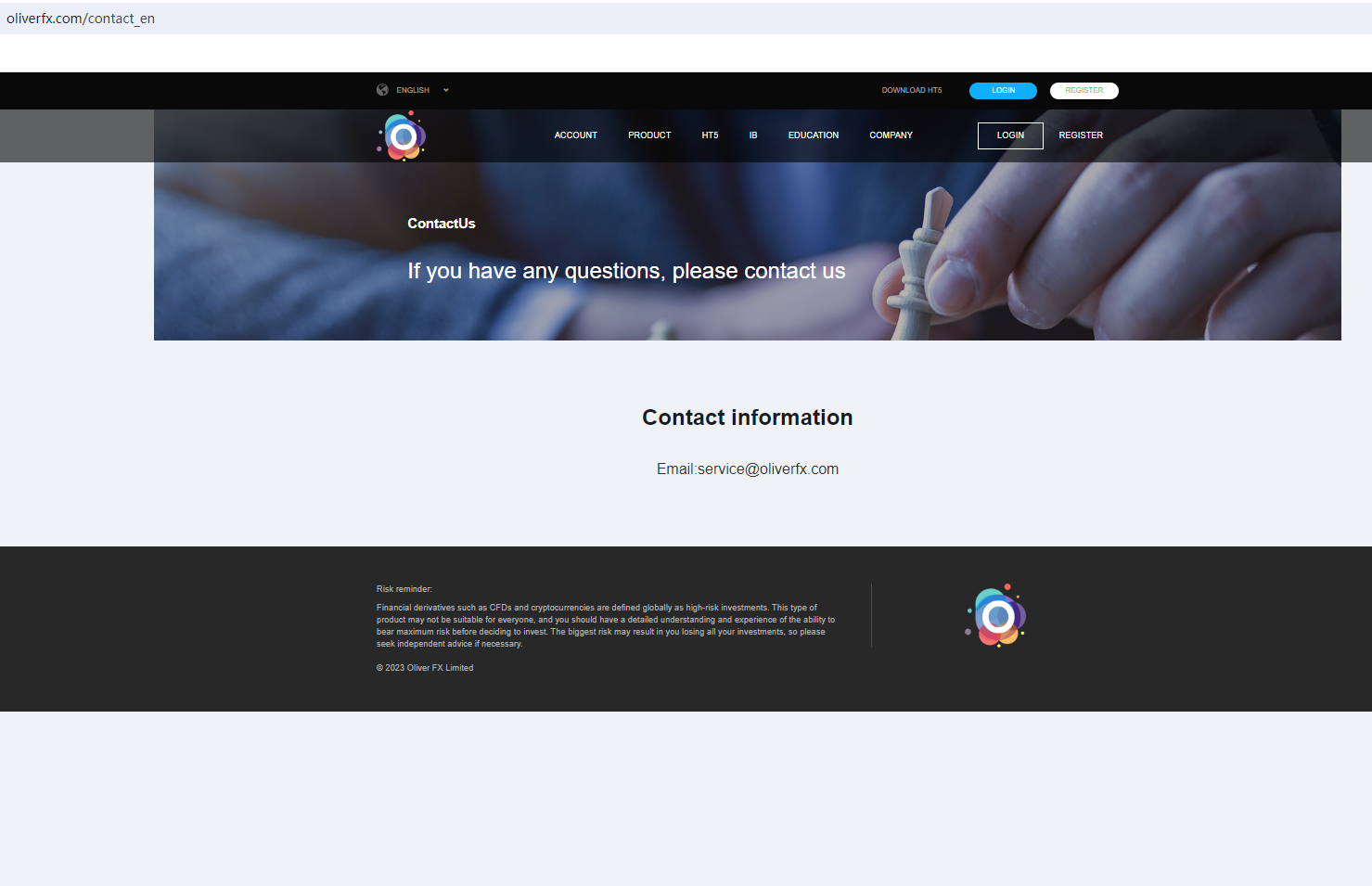 Oliver FX Limited claims to be a reliable company without presenting any information about its regulation or contact. The lack of such important information may be a distinct signal of an unlicensed broker, as regulated companies always present their accreditations and licenses in a prominent position. It is a red flag.