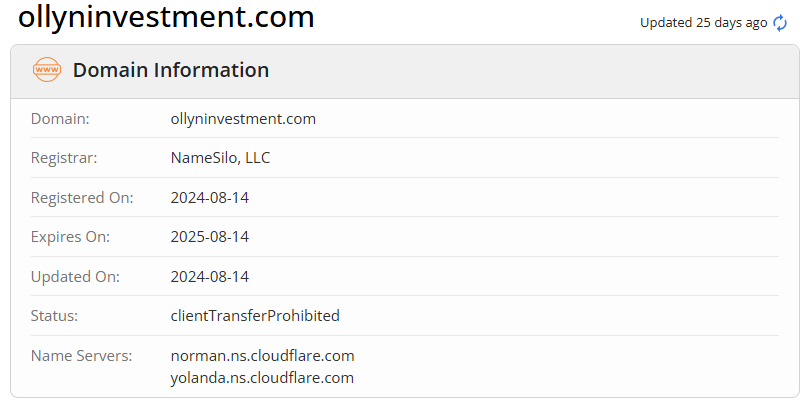 According to its website, it claims to be established in 2003. Upon investigation, it was found that its domain name was only registered in 2024. In addition, its address is located in Singapore, but no matching information was found in MAS.In essence, Ollyn Investment PTE LTD is not regulated by any governing body. Entrusting it with investors' funds is highly risky, as there are no legal protections in place to safeguard the funds.Ollyn Investment PTE LTD appears to be a scam.