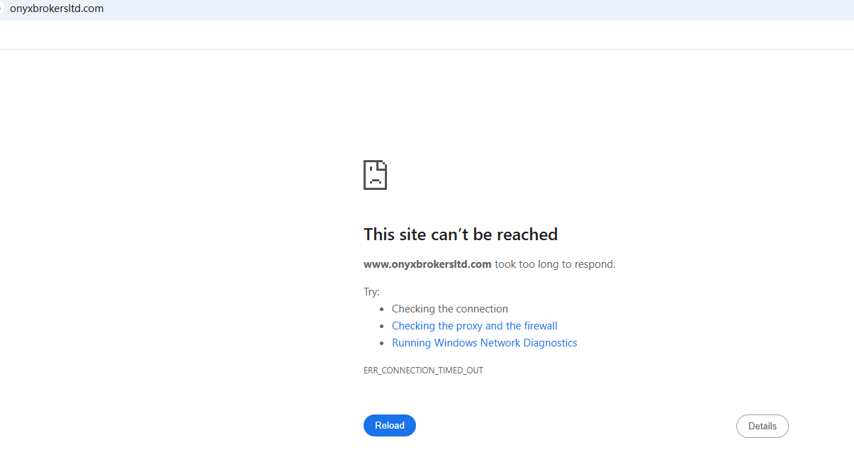 BrokersView found that the domain "http://www.onyxbrokersltd.com/" is currently inaccessible. This is widely regarded as a significant red flag, as the suspension of a broker's website often points to underlying regulatory or operational issues.