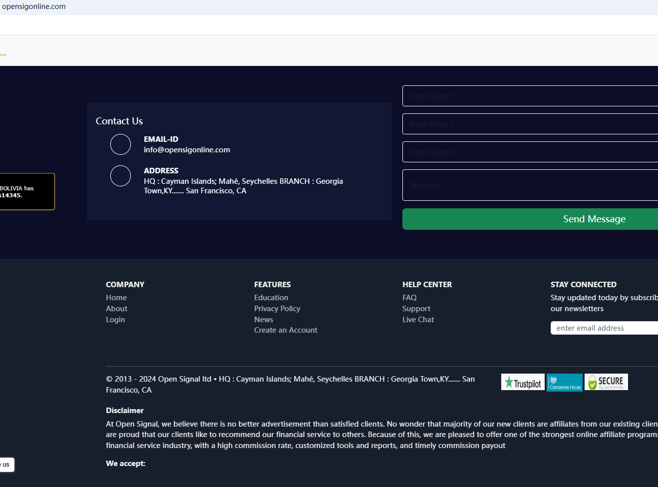 In essence, Open Signal ltd is not regulated by any governing body. Entrusting it with investors' funds is highly risky, as there are no legal protections in place to safeguard the funds. Open Signal ltd appears to be a scam.