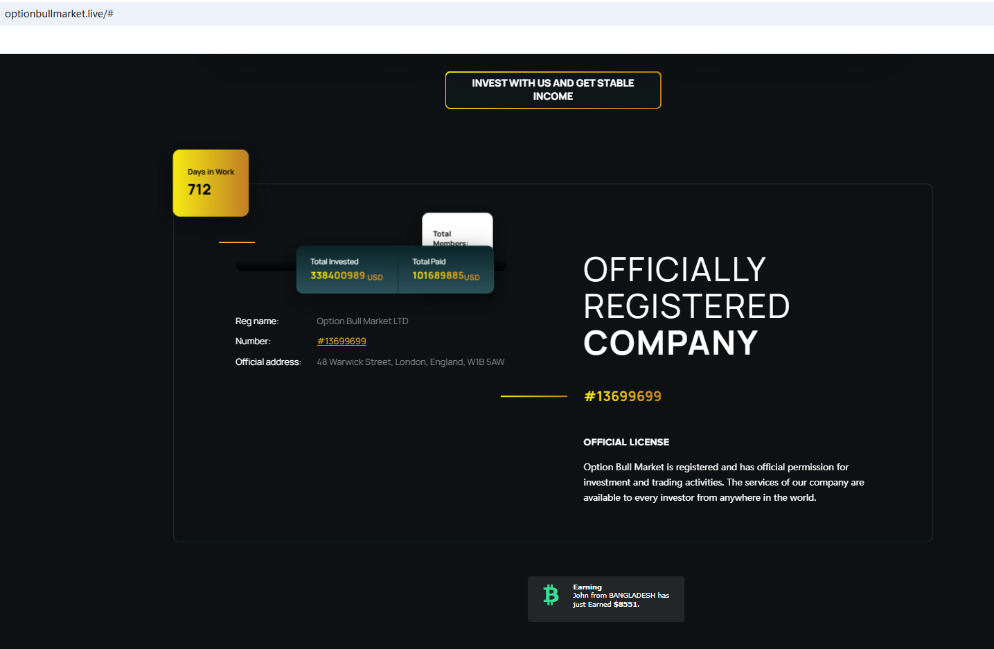 In addition, the Financial Conduct Authority (FCA) issued a warning against Option Bull Market for the lack of the required authorization.