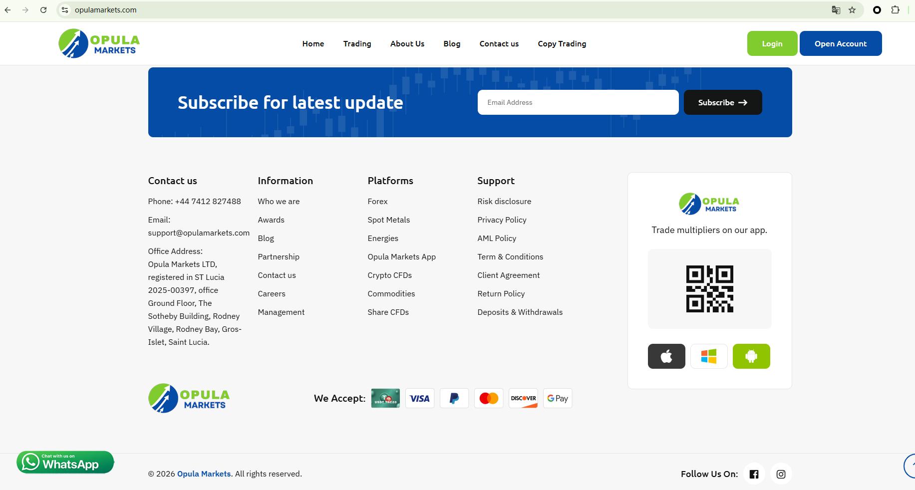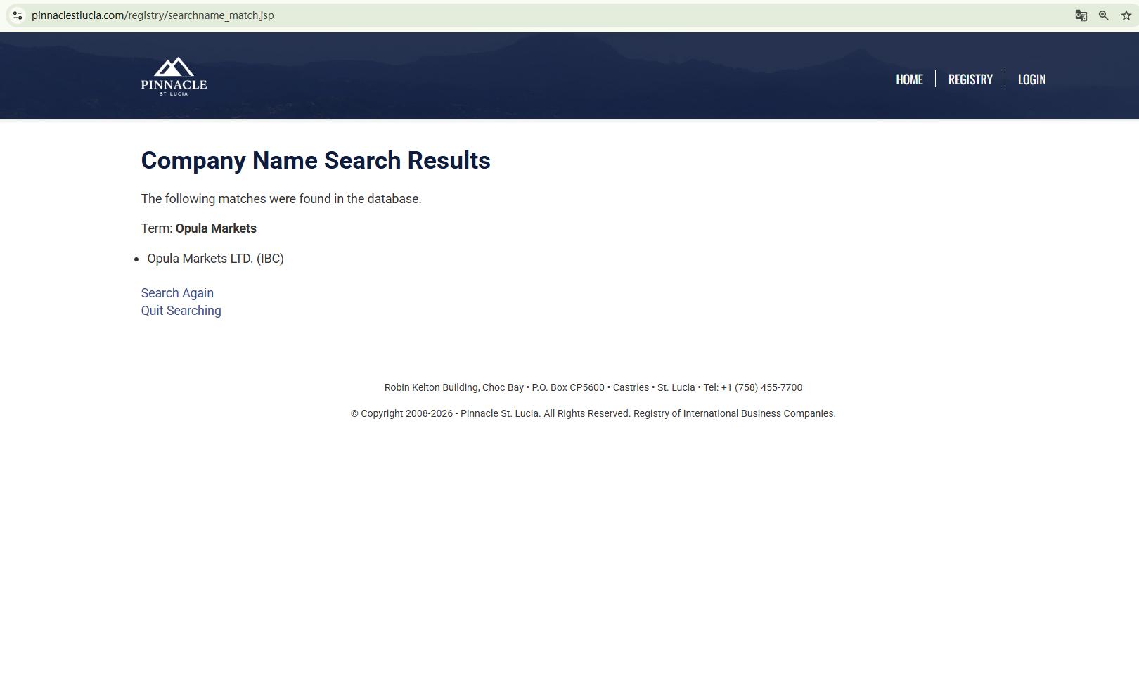 Opula Markets does not claim to be licensed by any regulator; it only claims to be registered in Saint Lucia. While we can confirm that there is a company with the same name in the Saint Lucia International Financial Centre (IFC) registry, this registration only grants it International Business Company (IBC) status. This does not constitute a valid financial licence. The IFC neither regulates nor licences forex trading activities.
