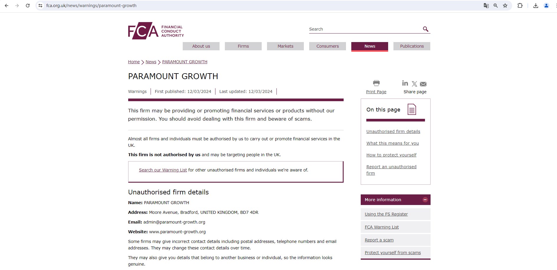Upon investigation, we found that Paramount-Growth is not Authorized by the United Kingdom Financial Conduct Authority(FCA). And the FCA issued a warning that PARAMOUNT GROWTH was providing financial services or products in the UK without authorisation.