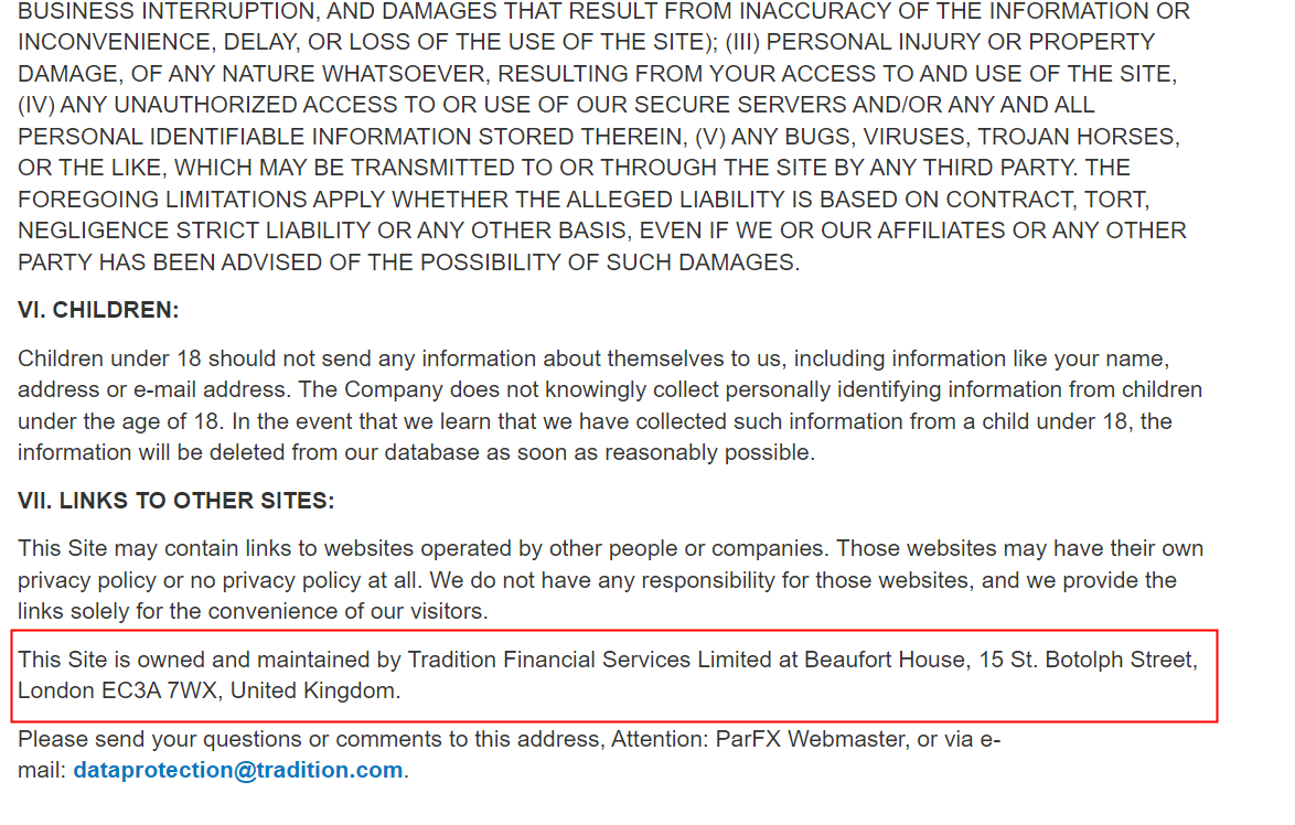 According to its website, ParFX is owned by Tradition Financial Services Limited and is based in the United Kingdom. After verification, we found the corresponding company name on the British company page and the Financial Conduct Authority (FCA), but the registration URL with the FCA does not match the platform URL, and the business scope does not include retail foreign exchange customers.
