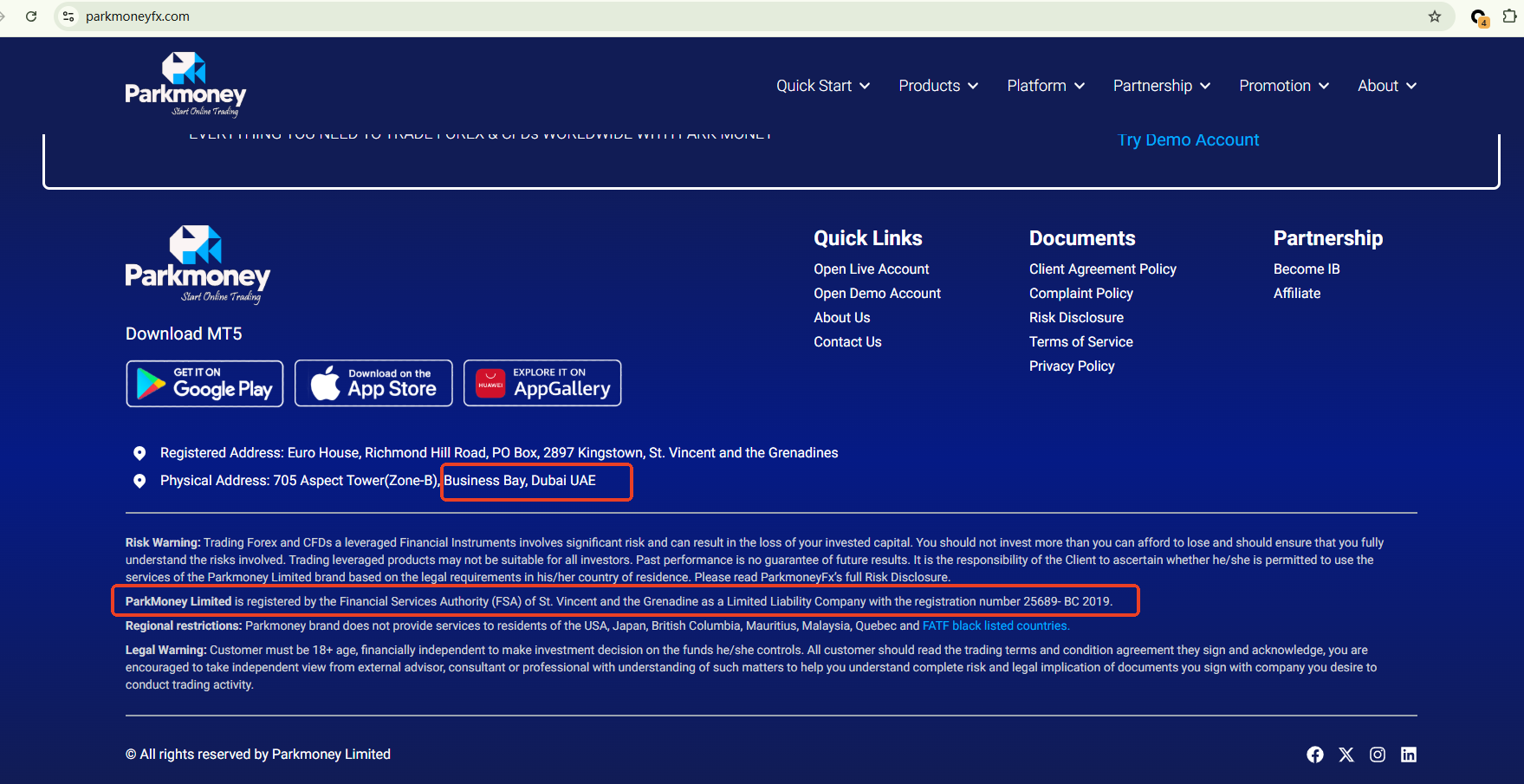 ParkMoney Limited claims to be registered with the Financial Services Authority (FSA) of St. Vincent and the Grenadines; however, our investigation found no matching entity in the SVG FSA’s official registry. The company also claims to operate in Dubai, UAE, but upon checking with the Securities and Commodities Authority (SCA), we found no evidence of it being licensed or regulated by this authority either. Based on these findings, ParkMoney is highly unlikely to hold any valid financial license permitting it to offer financial services or forex trading to the public, and it appears to be operating fraudulently.