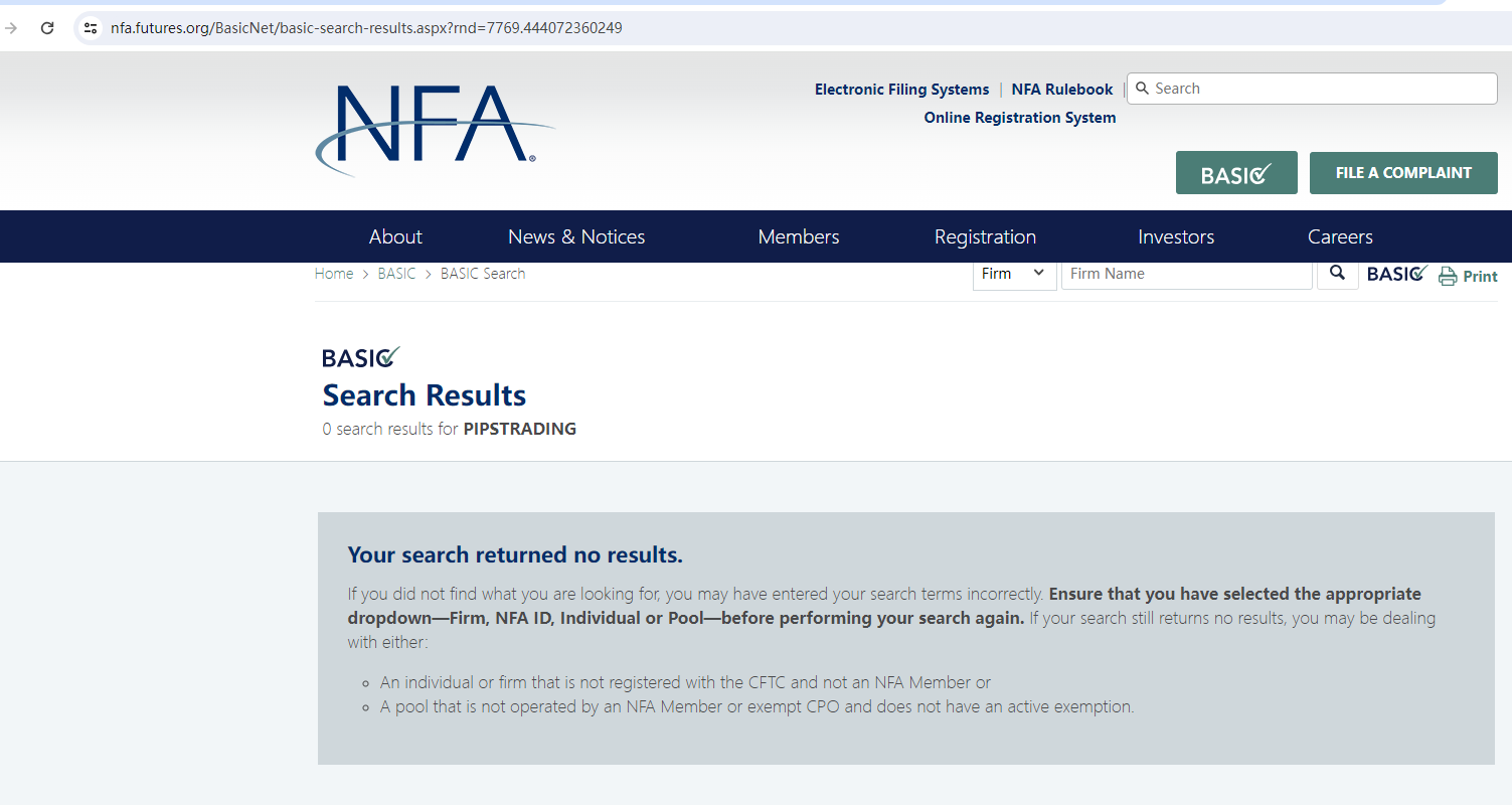 BrokersView found that the domain "https://pipstrading.online/" is currently inaccessible. This is widely regarded as a significant red flag, as the suspension of a broker's website often points to underlying regulatory or operational issues.