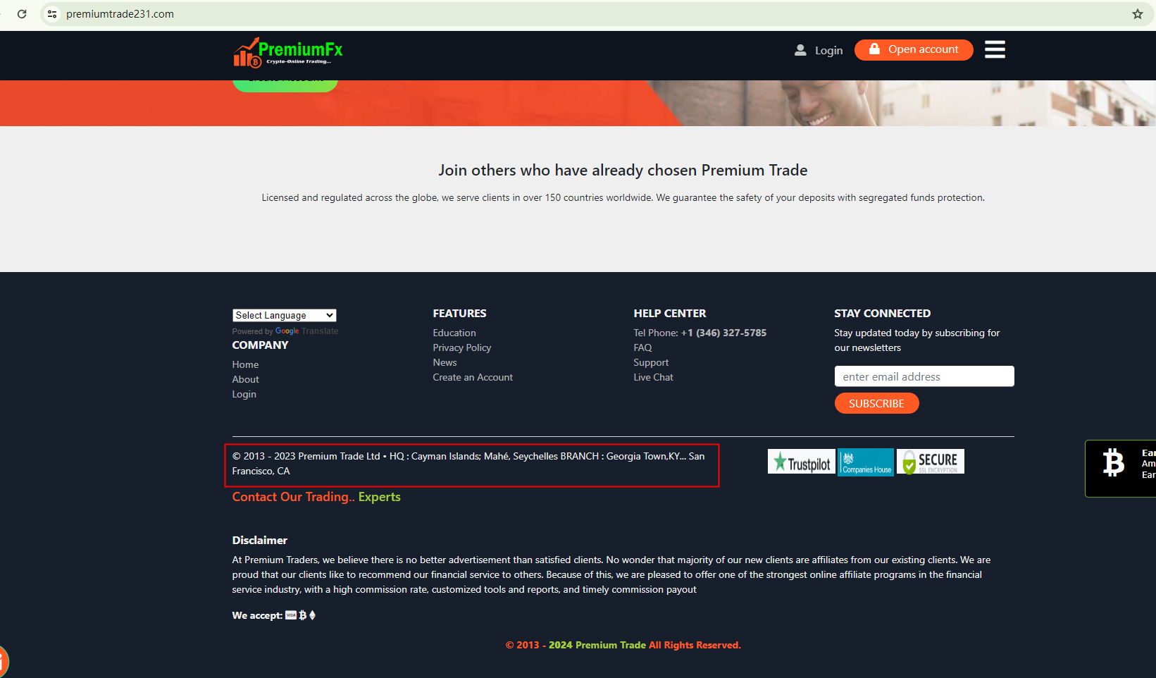 Furthermore, the domain name, premiumtrade231.com, was only created in July 2023. This recent establishment contradicts its claims of a longstanding reputation and achievements.