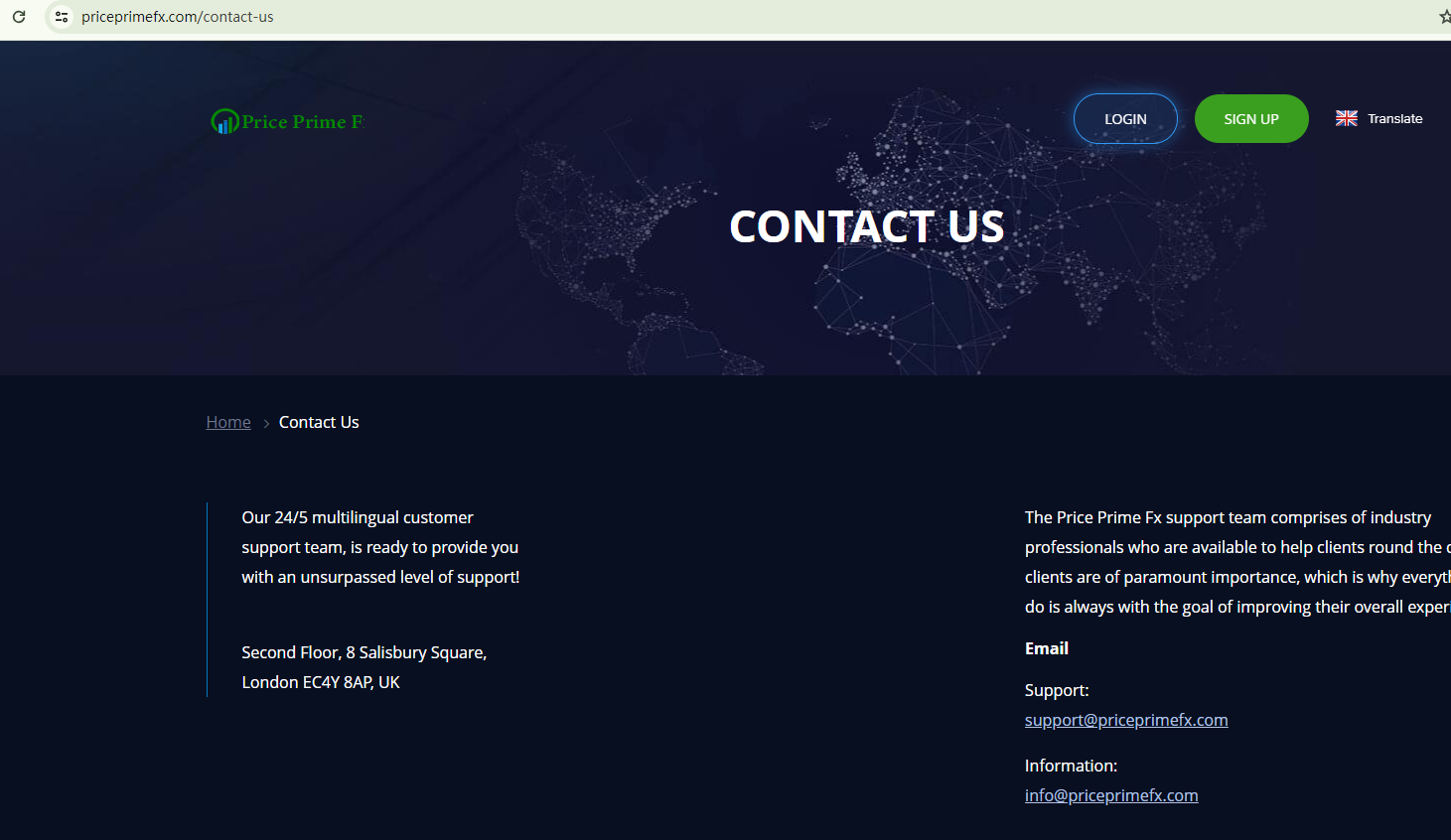 Price Prime Fx claims to be regulated, but it doesn't provide any specific information regarding its regulatory status. The absence of regulatory oversight is a red flag.
