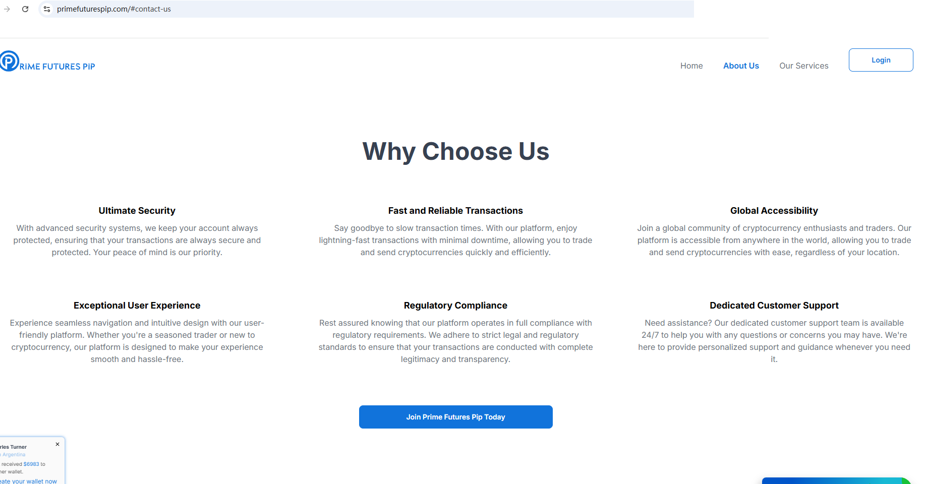In essence, Prime Futures Pip is not regulated by any governing body. Entrusting it with investors' funds is highly risky, as there are no legal protections in place to safeguard the funds.