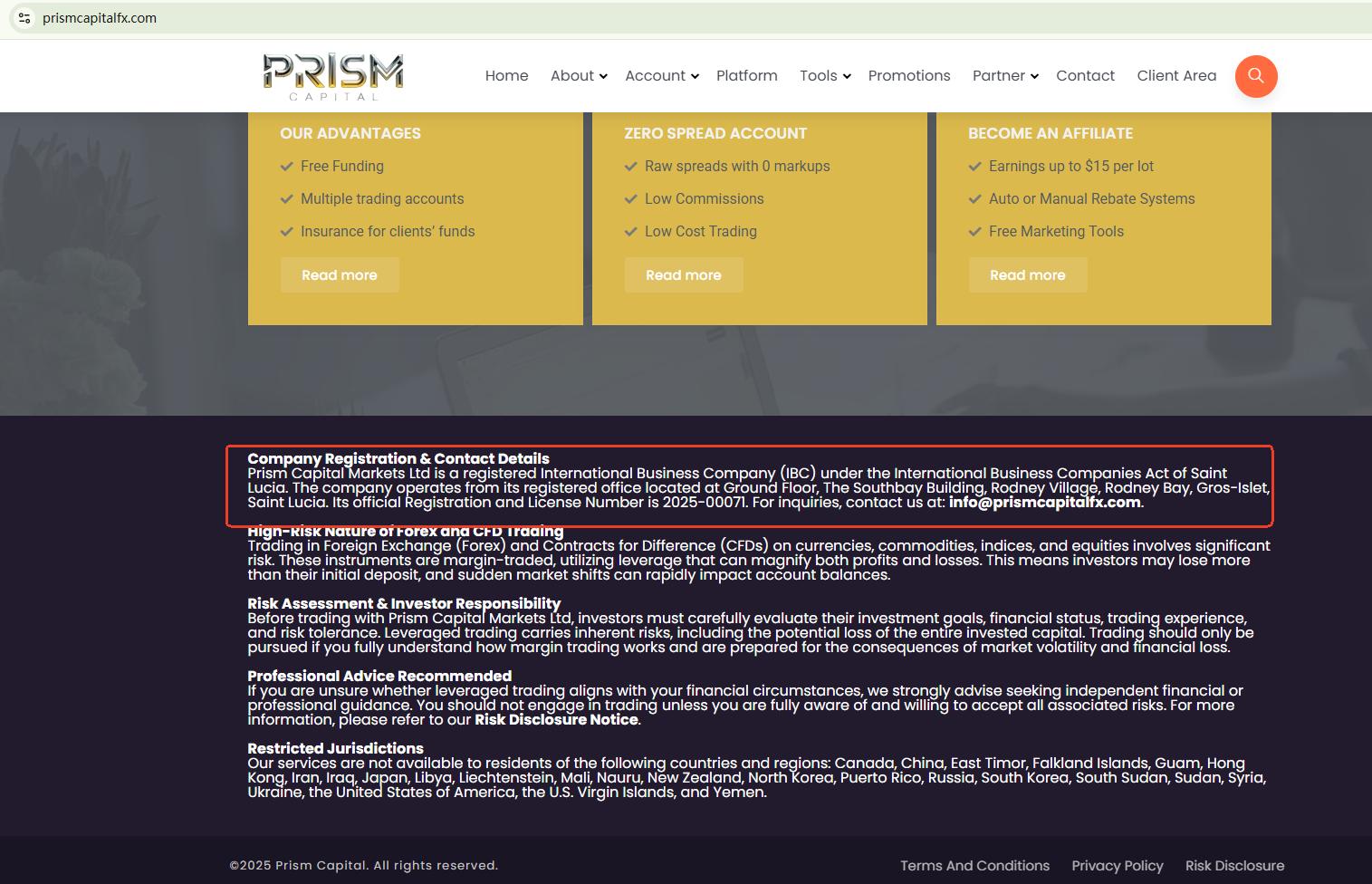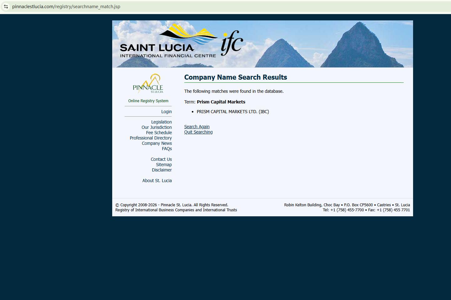 Prism Capital Market does not claim to be licensed by any regulator; it only claims to be registered in Saint Lucia. While we can confirm that there is a company with the same name in the Saint Lucia International Financial Centre (IFC) registry, this registration only grants it International Business Company (IBC) status. This does not constitute a valid financial licence. The IFC neither regulates nor licences forex trading activities.