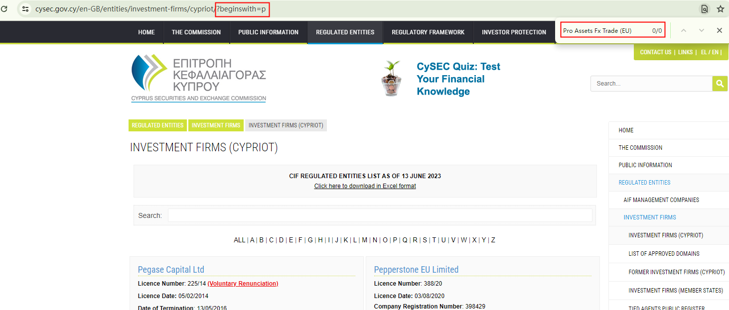 3) Pro Assets Fx Trade (EU) Ltd, purportedly regulated by the Cyprus Securities and Exchange Commission (CySEC) with license number 443/16;