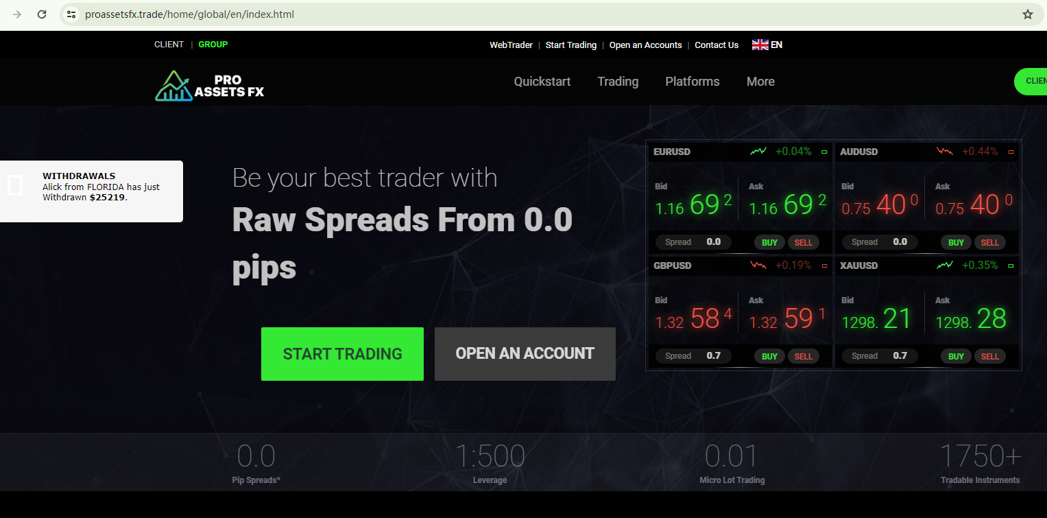 Pro Assets Fx Trade claims to be one of the world's largest forex brokers by trading volume. It provides the following licensing information:1) Pro Assets Fx Trade Ltd, allegedly regulated by the Financial Services Authority of the United States with license number RD07599;2) International Capital Markets Pty Ltd, supposedly regulated by the Australian Securities and Investments Commission (ASIC) with license number 742853;3) Pro Assets Fx Trade (EU) Ltd, purportedly regulated by the Cyprus Securities and Exchange Commission (CySEC) with license number 443/16;4) Pro Assets Fx Trade Ltd, claimed to be regulated by the Securities Commission of the Bahamas (SCB) with license number PIA-F429;5) Raw Trading Ltd trading as Pro Assets Fx Trade Global, allegedly holds SDL number SD018, regulated by the Seychelles Financial Services Authority (FSA Seychelles).However, our comprehensive verification suggests that these licensing details are either falsified or misused. It is crucial to note that in the US, there is no institution called the Financial Services Authority. For Pro Assets Fx Trade to be a legitimate forex broker in the US, it is required to be registered as a member of the National Futures Association (NFA). However, it isn't an NFA member and thus not subject to the NFA's oversight.As for the claimed affiliation between Raw Trading Ltd and Pro Assets Fx Trade, it appears to merely exist in the assertions of the latter. Profiles provided by the FSA Seychelles clearly indicate that there is no connection between the two entities.In essence, Pro Assets Fx Trade is not regulated by any governing body. Entrusting this broker with investors' funds is highly risky, as there are no legal protections in place to safeguard the funds.Pro Assets Fx Trade appears to be a scam.