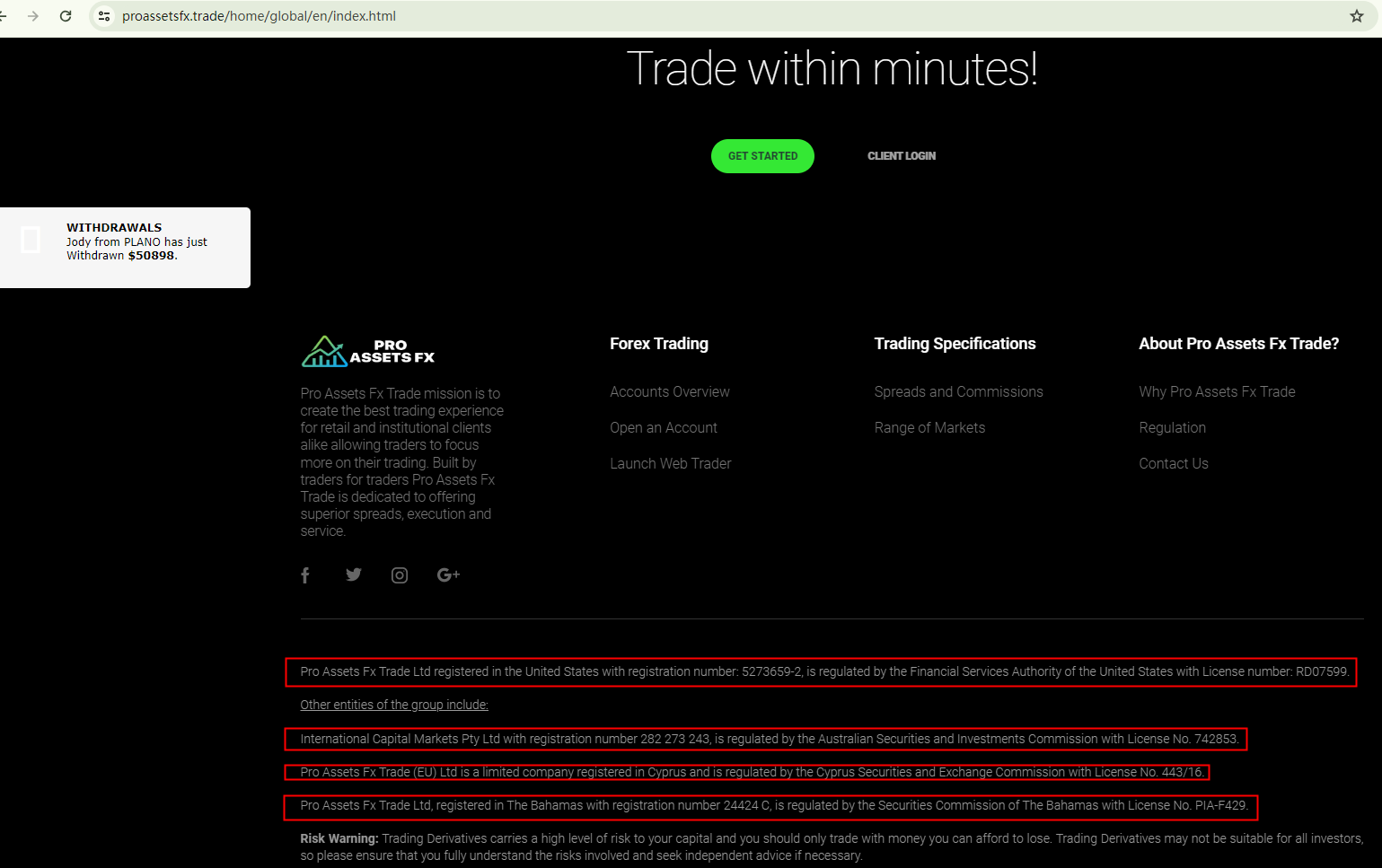 Pro Assets Fx Trade claims to be one of the world's largest forex brokers by trading volume. It provides the following licensing information: