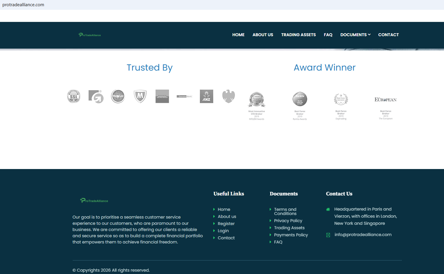 On March 12, 2026, the Financial Services and Markets Authority (FSMA) issued a warning about ProTradeAlliance for the lack of the required authorization. https://www.fsma.be/en/warnings/beware-these-new-fraudulent-trading-platforms-4