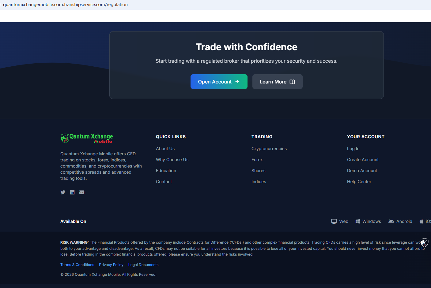 In fact, Quantum Xchange Mobile is not regulated by any authority. Therefore, Quantum Xchange Mobile is a scam.