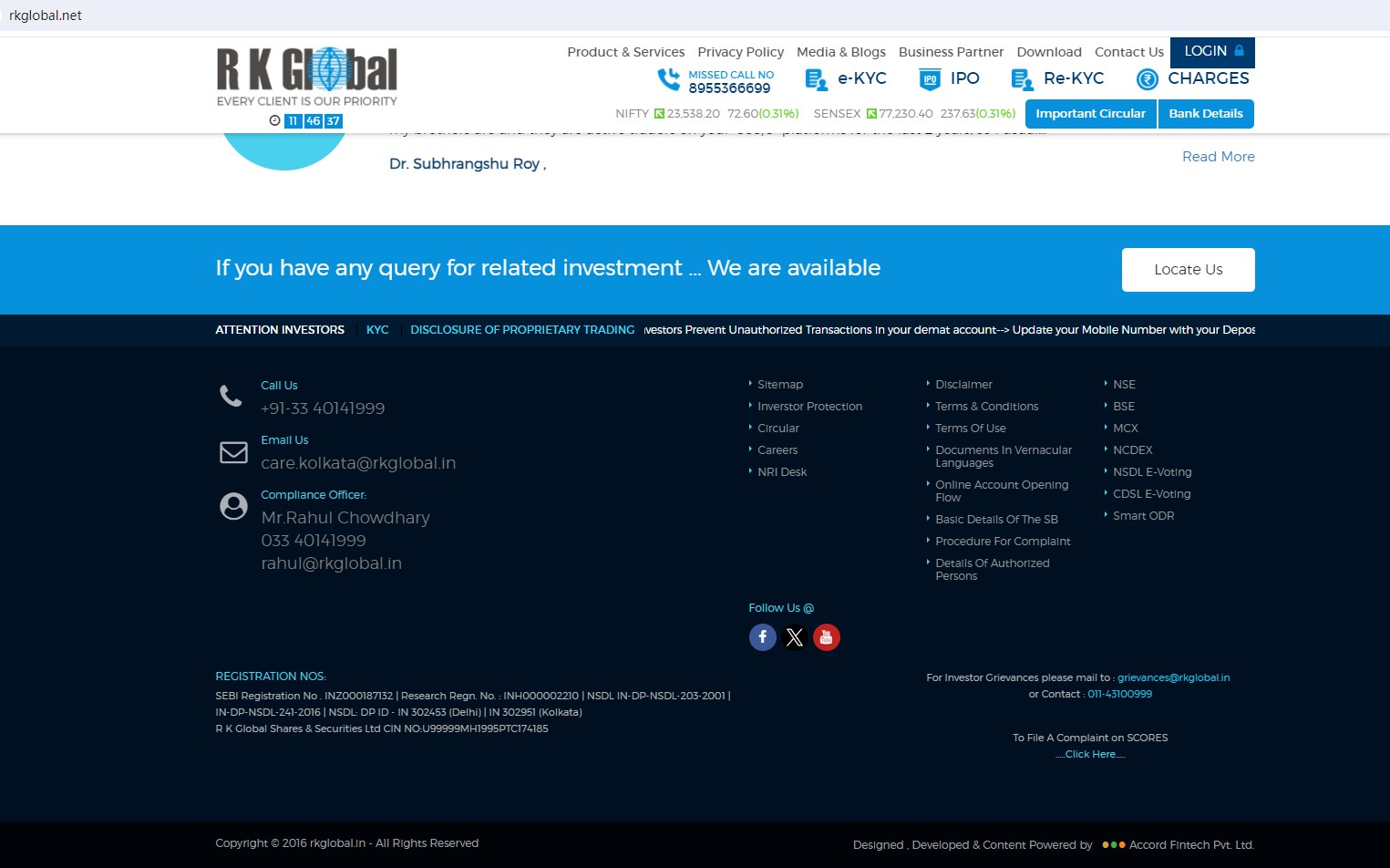 R K Global claims to be a broker and have the registration of SEBI (Securities and Exchange Board of India), offering shares, currency and derivatives trading in global markets.
