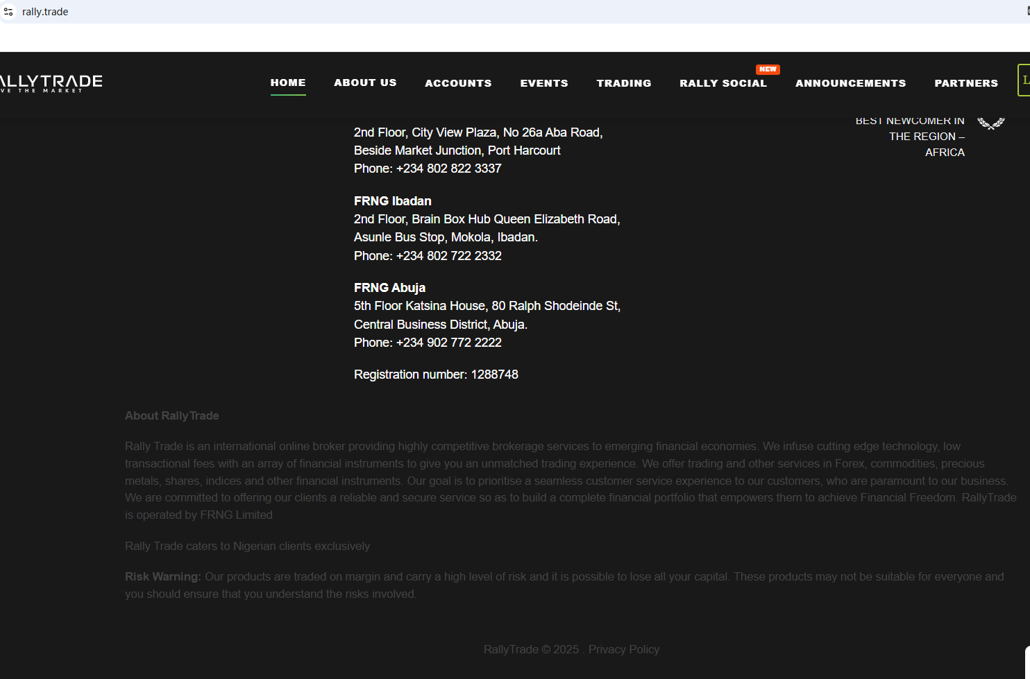 According to its website, it claims to be registered in Nigeria, but as we all know, Nigeria does not have an agency capable of regulating foreign exchange. Apart from this, it does not display any other strong regulatory evidence on its website. This is a very untrustworthy behavior. Investors are advised to be careful to identify and stay away from it.