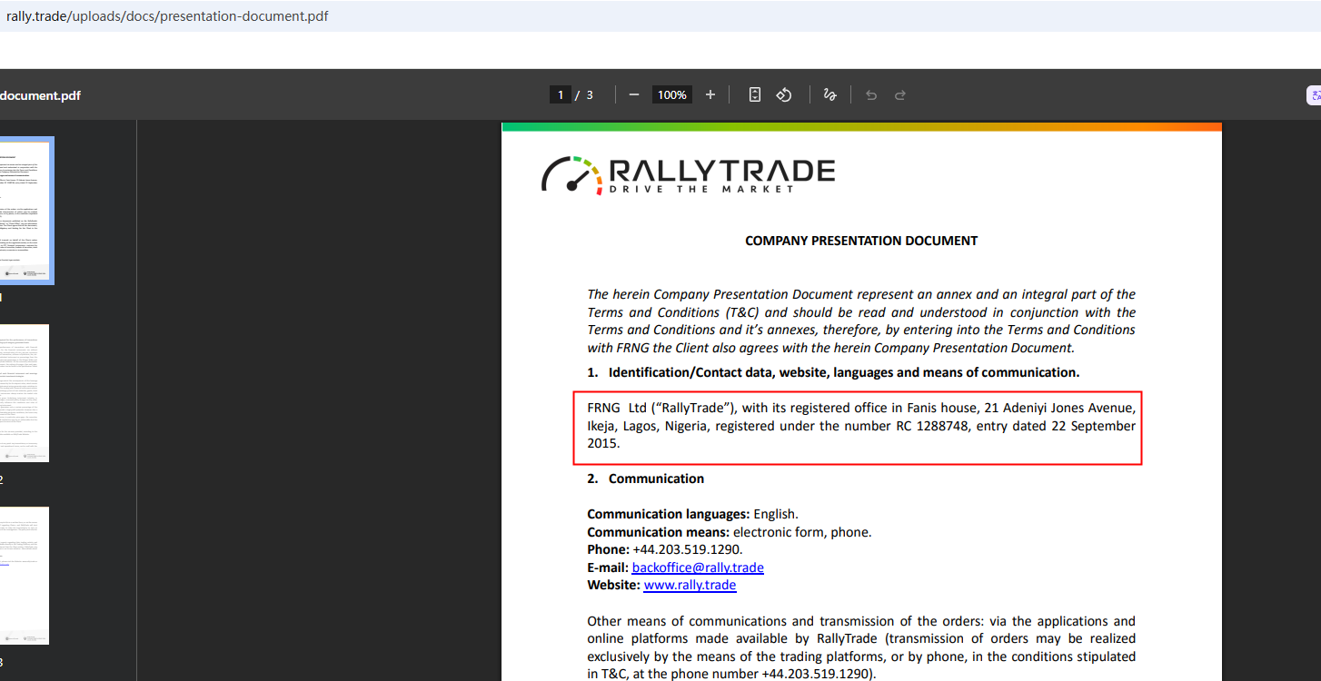 In essence, Rally Trade is not regulated by any governing body. Entrusting it with investors' funds is highly risky, as there are no legal protections in place to safeguard the funds. Rally Trade appears to be a scam.