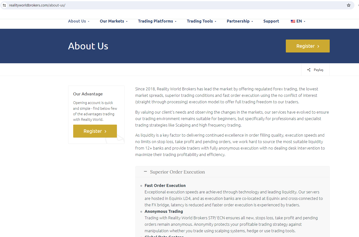 Reality World Brokers claims to be a reliable company without presenting any information about its regulation or contact. The lack of such important information may be a distinct signal of an unlicensed broker, as regulated companies always present their accreditations and licenses in a prominent position. It is a red flag.