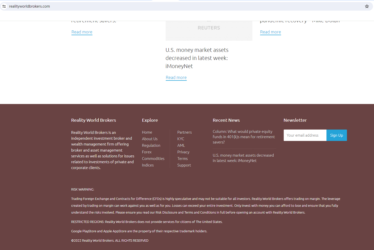 Reality World Brokers claims to be a reliable company without presenting any information about its regulation or contact. The lack of such important information may be a distinct signal of an unlicensed broker, as regulated companies always present their accreditations and licenses in a prominent position. It is a red flag. The truth is that Reality World Brokers is not regulated by any regulators. Letting it hold or control investors' money is unsafe, and the money can not be protected by any laws.Reality World Brokers is a scam.