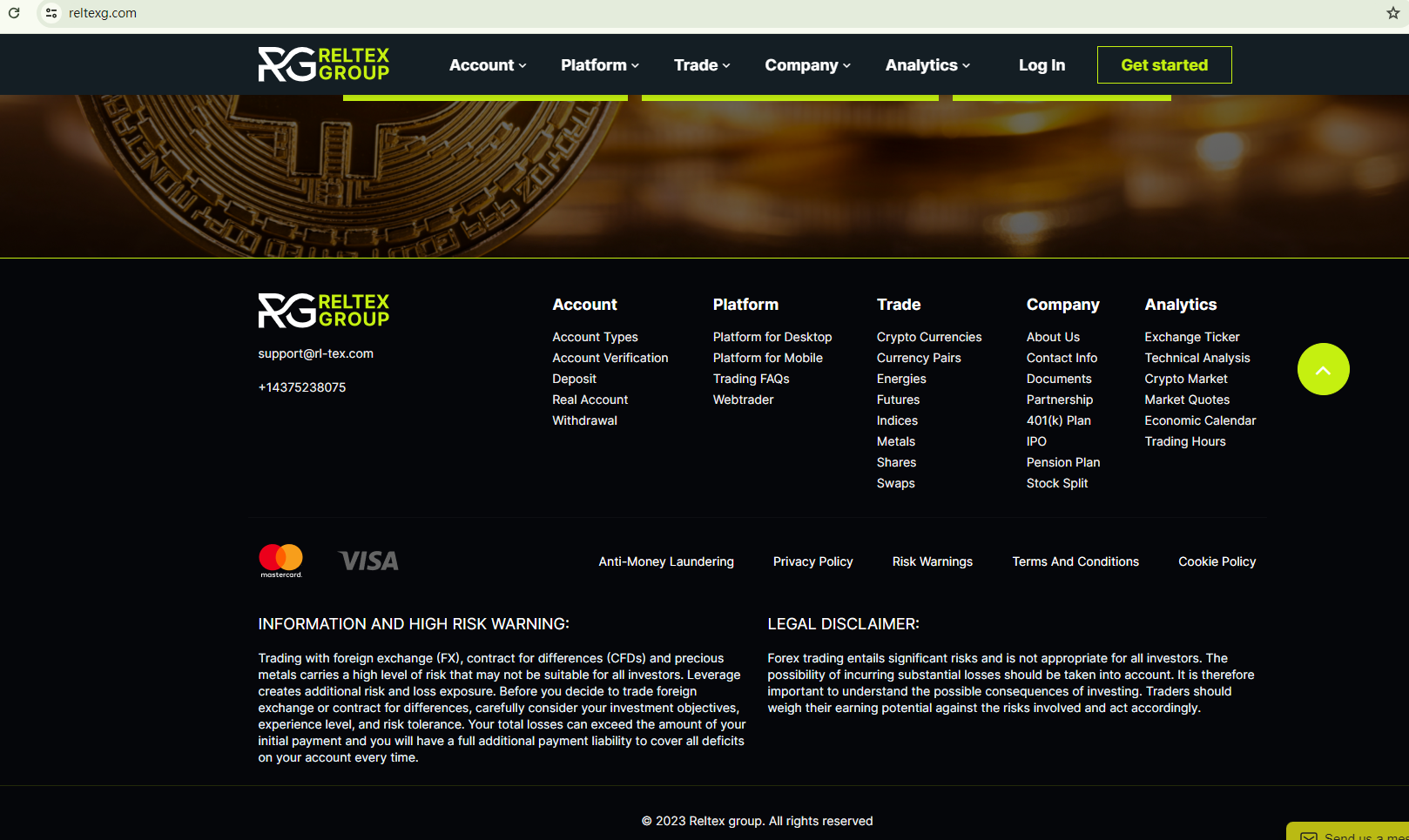 Reltex Group claims to be a forex broker providing a secure and transparent trading environment. However, contradicting to such claims, it hasn't disclosed any licensing data and company information to validate its legitimacy. This lack of essential information is a red flag for potential fraudulent activities.