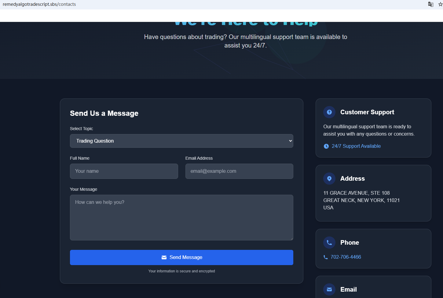 It claims to be regulated nationwide on the website, but does not display any strong regulatory information. Based on its office address, we checked relevant institutions in the United States and did not find any matching information in the National Futures Association (NFA). In addition, the Financial Conduct Authority (FCA) issued a warning against Remendy Invest, believing this company might be providing financial services or products without proper authorization
