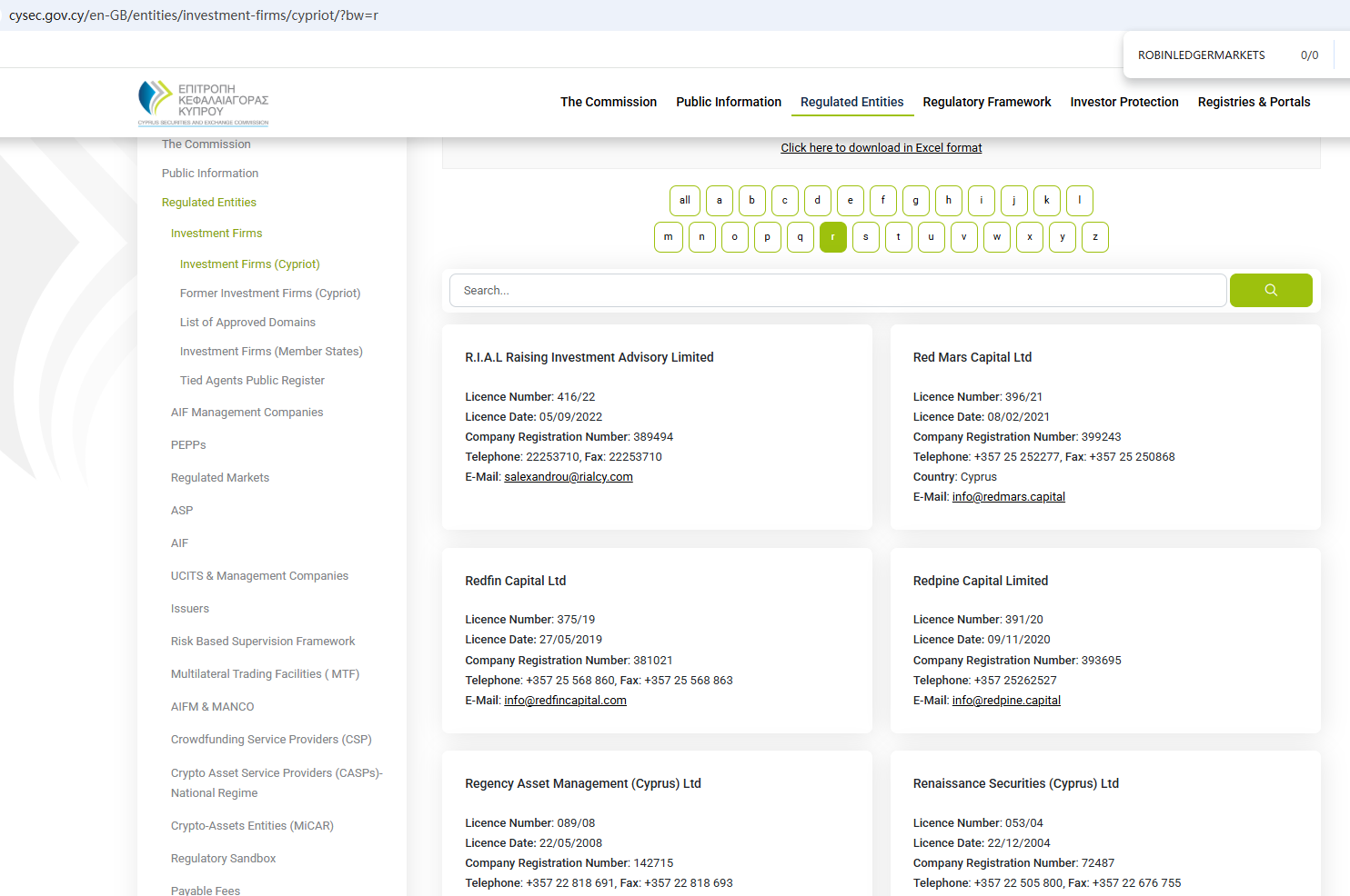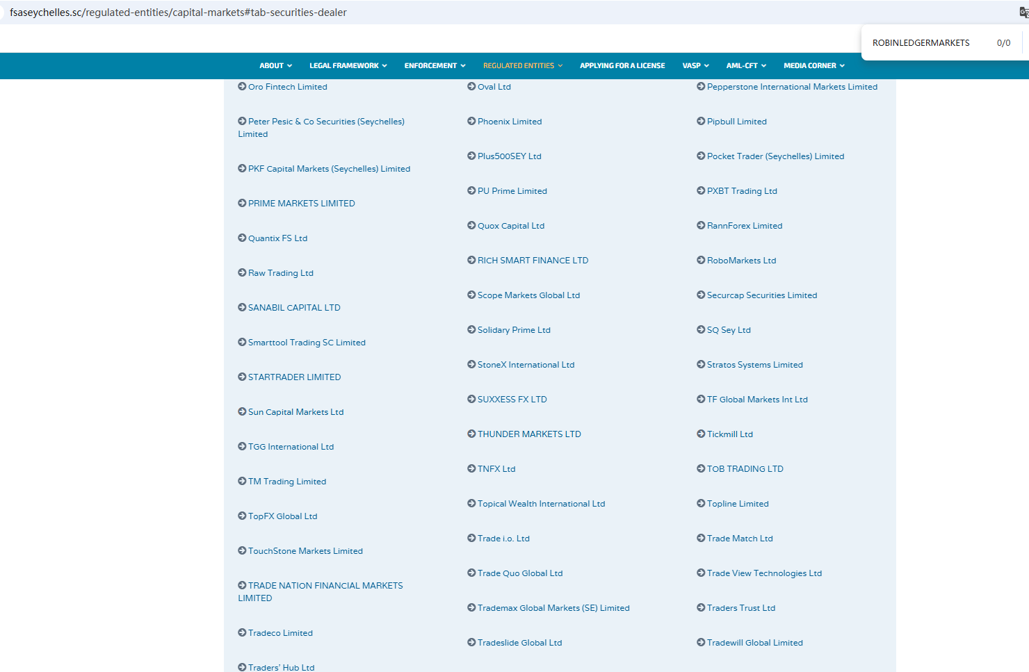 According to its website, it claims to be regulated by the Seychelles Financial Services Authority (Seychelles FSA) and the Cyprus Securities and Exchange Commission (CySEC). Upon investigation, no matching information was found in the Seychelles FSA and CySEC. In addition, the Financial Conduct Authority (FCA) issued a warning regarding ROBINLEDGERMARKETS, suspecting that this company may be offering financial services or products without the necessary authorization.