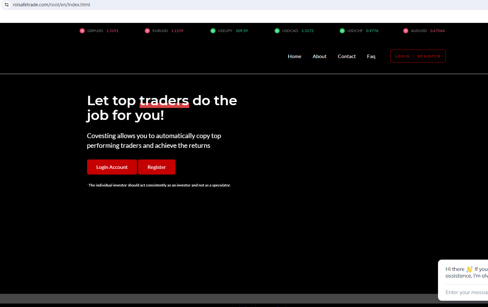 Unknown operators provide financial services under the trade name ROISAFETRADE but fail to provide any specific regulatory information to support their claim of being "globally regulated". This lack of transparency is a red flag.While it claims to be domiciled in the UK, the Financial Conduct Authority (FCA) has issued a warning about ROISAFETRADE, flagging it as an unauthorized firm and advising investors to stay away from it.In essence, ROISAFETRADE is not regulated by any governing body. Entrusting it with investors' funds is highly risky, as there are no legal protections in place to safeguard the funds.ROISAFETRADE appears to be a scam.