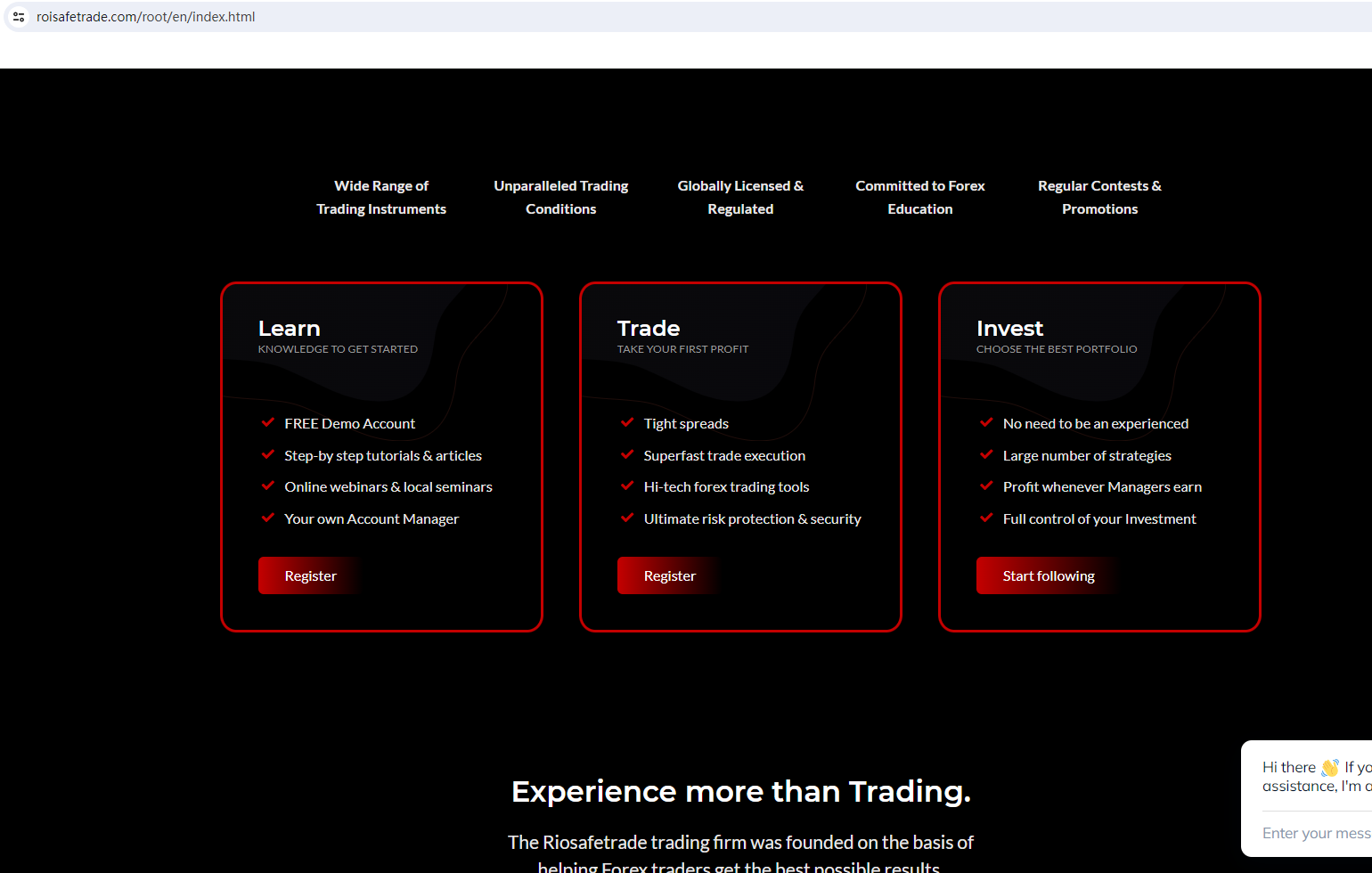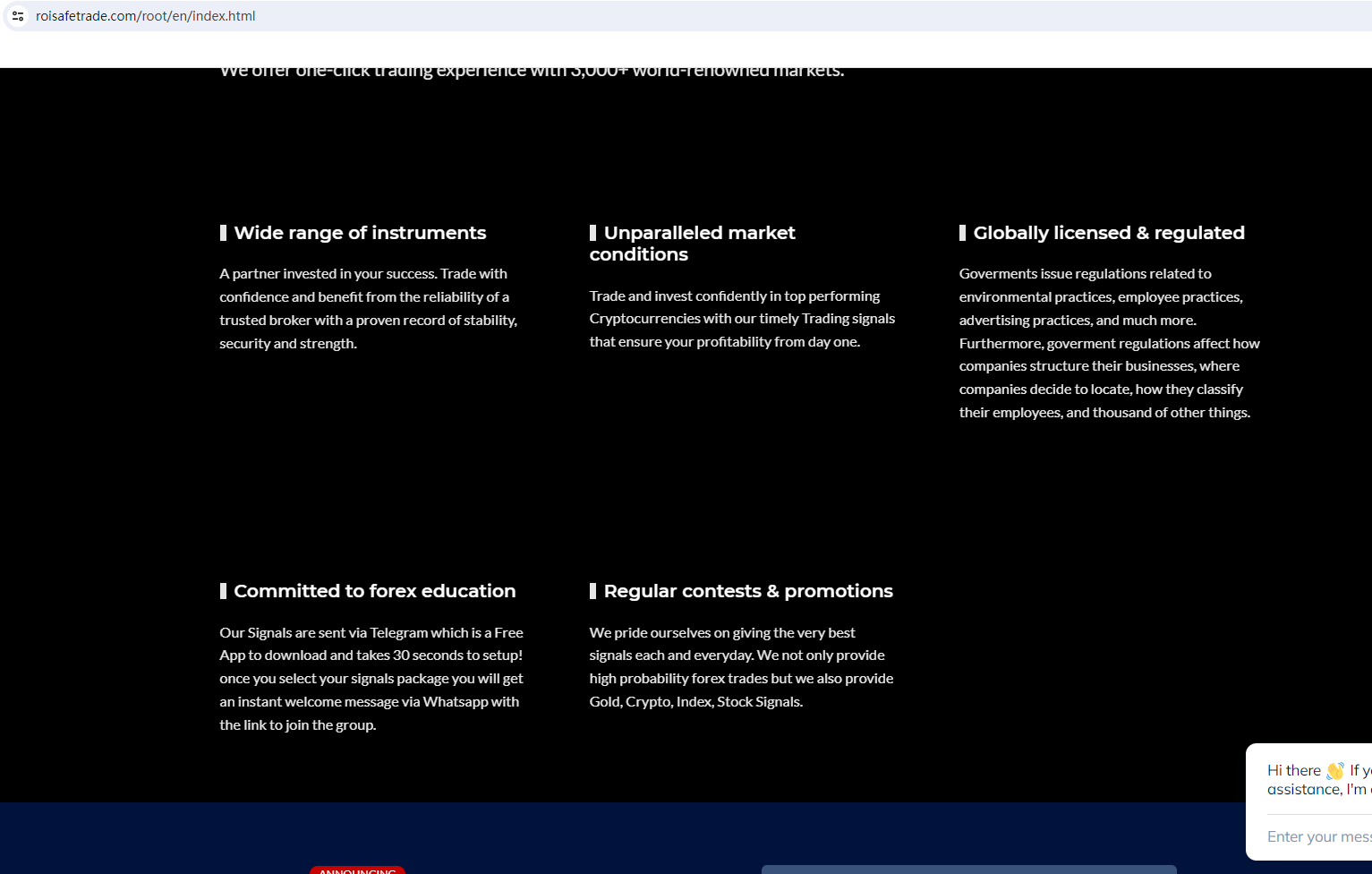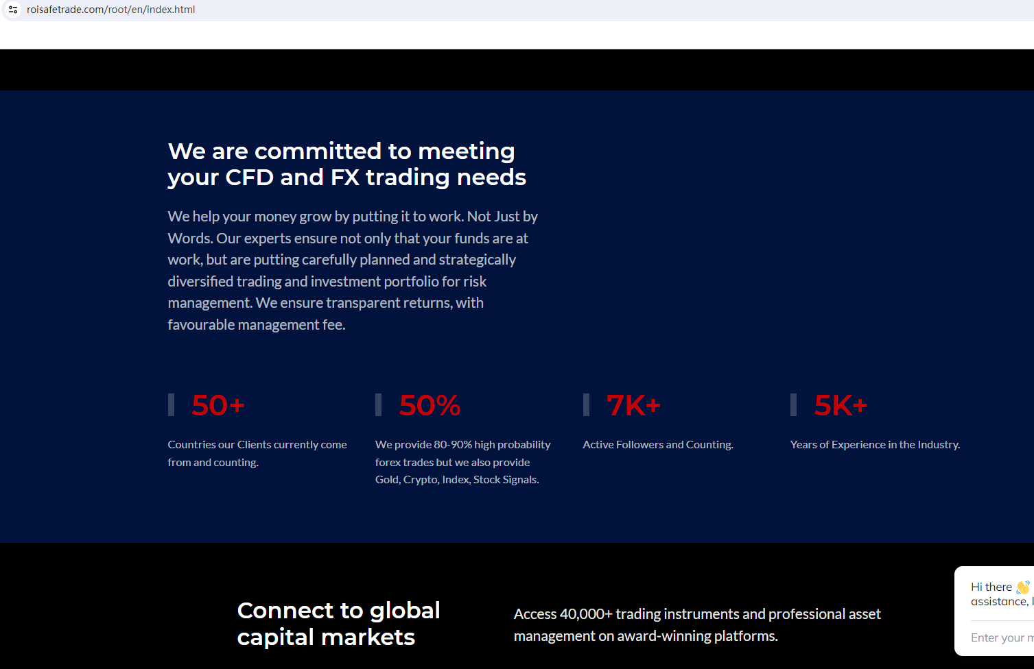 Unknown operators provide financial services under the trade name ROISAFETRADE but fail to provide any specific regulatory information to support their claim of being "globally regulated". This lack of transparency is a red flag.