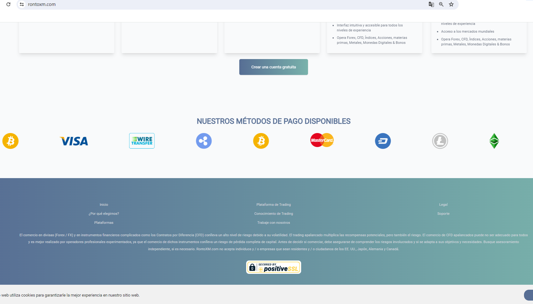 RONTOXM claims to be a reliable company without presenting any information about its regulation or contact. The lack of such important information may be a distinct signal of an unlicensed broker, as regulated companies always present their accreditations and licenses in a prominent position. It is a red flag.